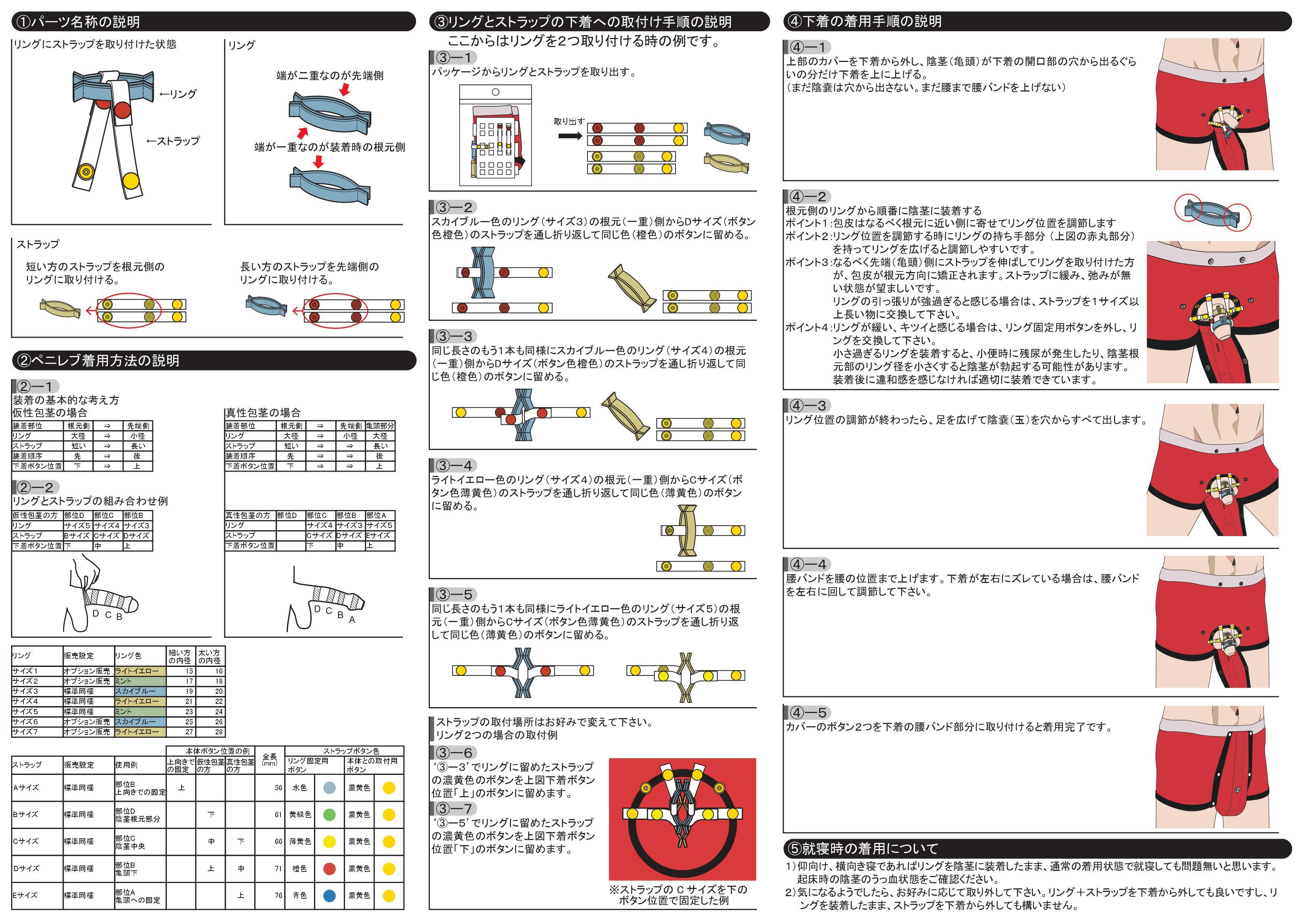 取り付け方、着用方法(詳細は、ペニレブウェブサイトの着用説明書をご覧下さい。)