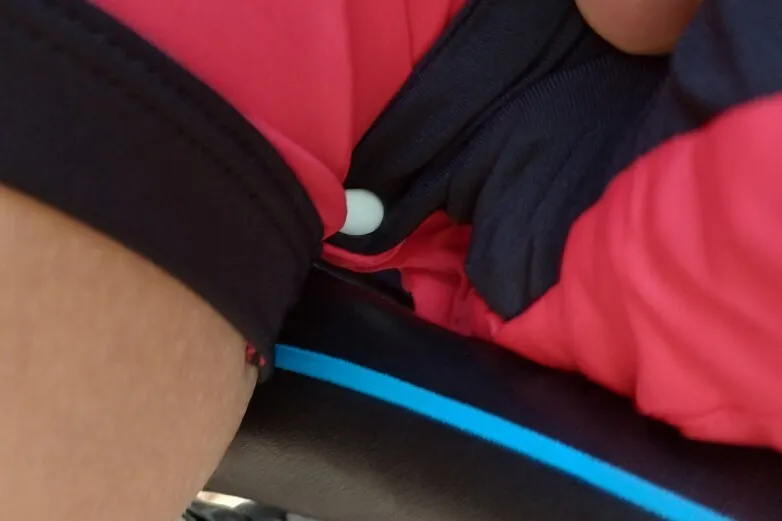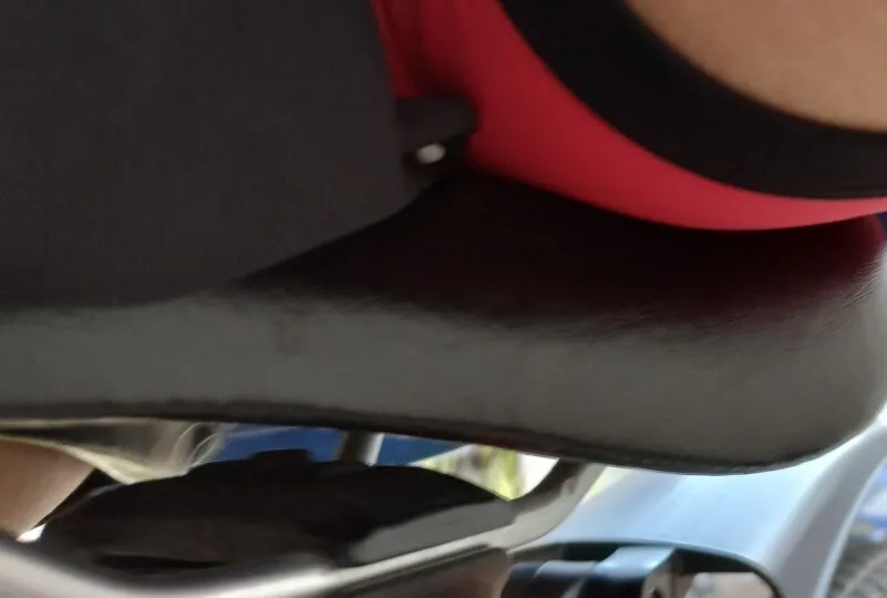 A:股のボタンは、陰嚢と肛門の間に位置しています。椅子、自転車、自動車の長時間の着座姿勢では、違和感や痛みを感じたことはございませんが、もし不都合がございましたら、naknohito@penirev.comにご連絡下さい。参考の写真を掲載致します。