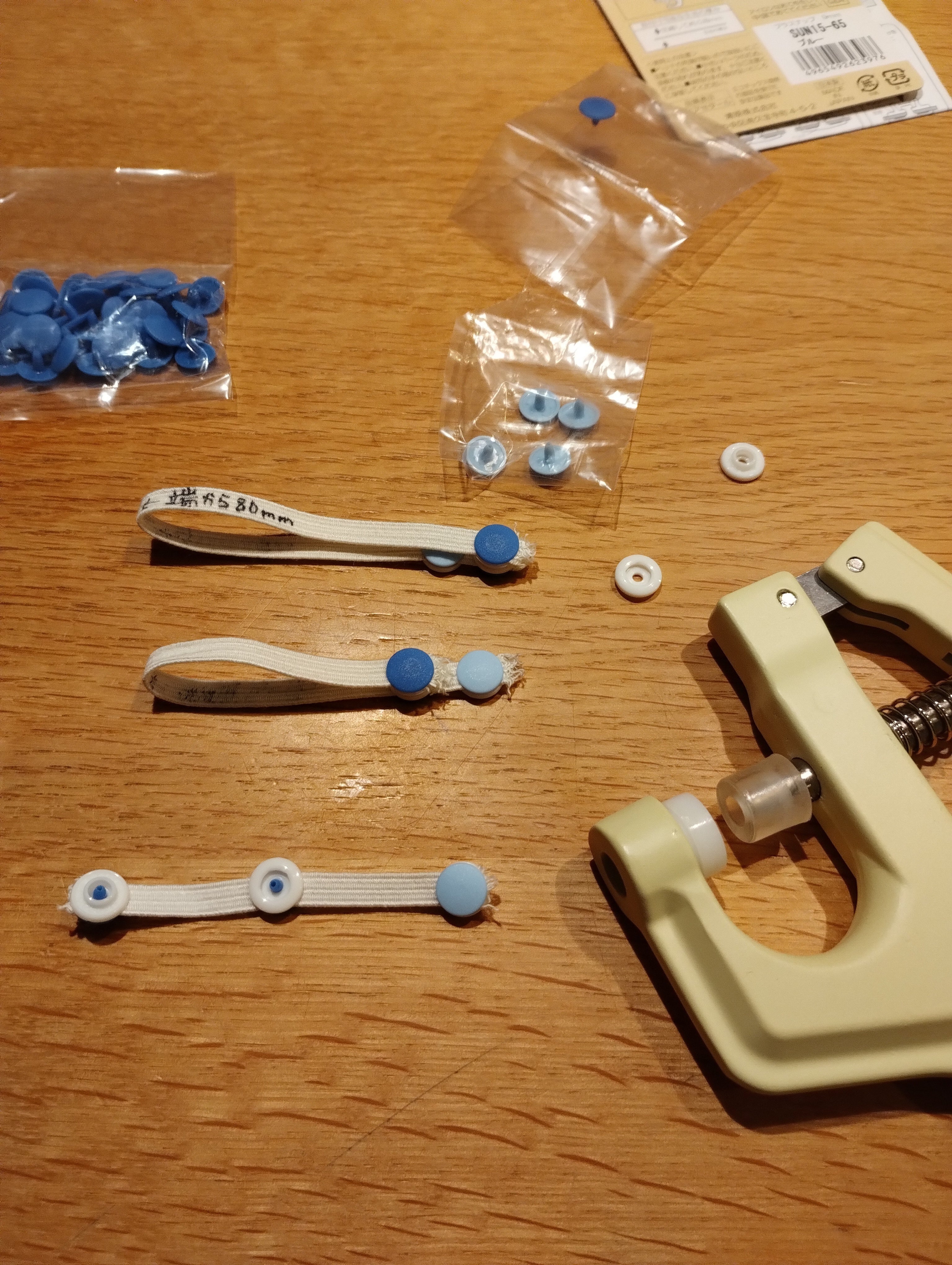最初は市販品をベースに自分で改造し、今とは違う素材(包帯2層式)でリングとストラップの試作をしました。ストラップはゴムとリングを通すのに、別の粘着性包帯を使う2分割式でした。