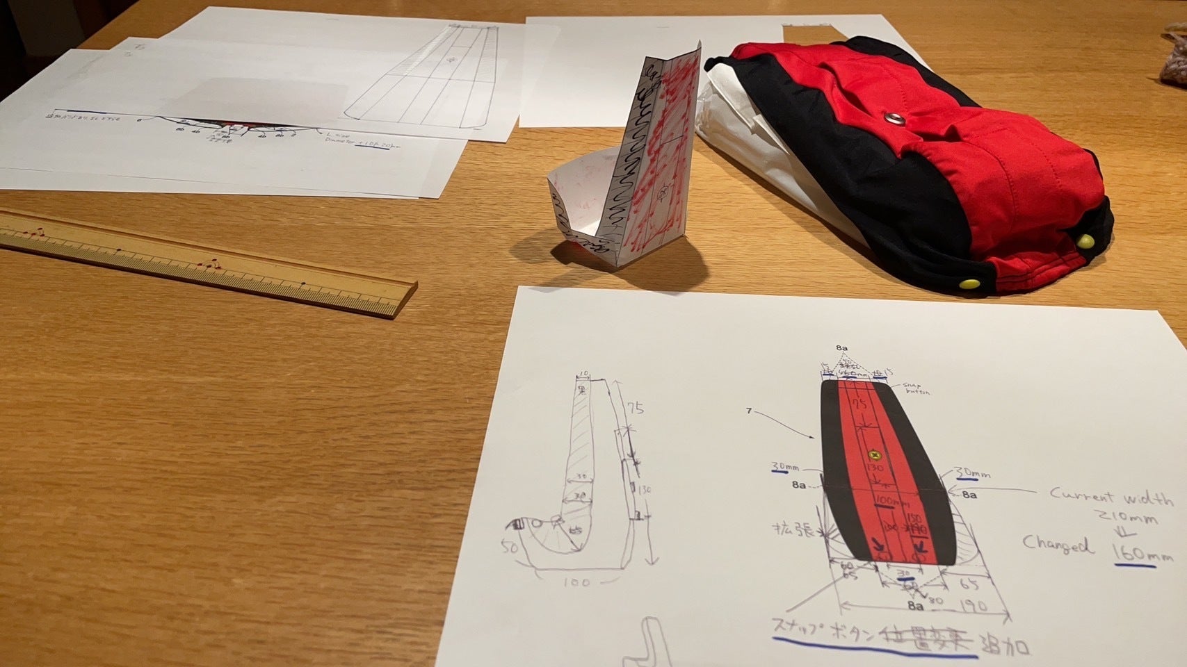 一方で、打ち合わせと仕様決めを重ねてファーストサンプルが手元に届いたのが2023年5月、カバーの寸法決めに苦労しまして、計5回の試作による改善、改良を経て2023年9月にLサイズの仕様を決めることができました。市販品のサイズ展開や知人のモニターの方のフィードバックも踏まえて、クラウドファンディングの終了前に余裕を持って、Sから5Lまでのサイズ仕様を決めて参ります。(23年9月現在、現在進行形です。)