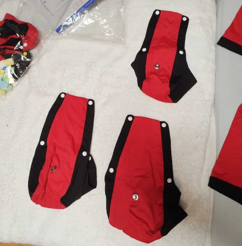 23年8月11日 必要な丈は分かったので、4回目で赤い布の幅を60mm, 80mm, 100mmの3パターン作ってもらい、60mm幅がベストと判断。白いボタンの高さ位置だけ修正してカバー仕様が完成し、5回目の試作品がこのプロジェクトの写真に使われているサンプルになります。