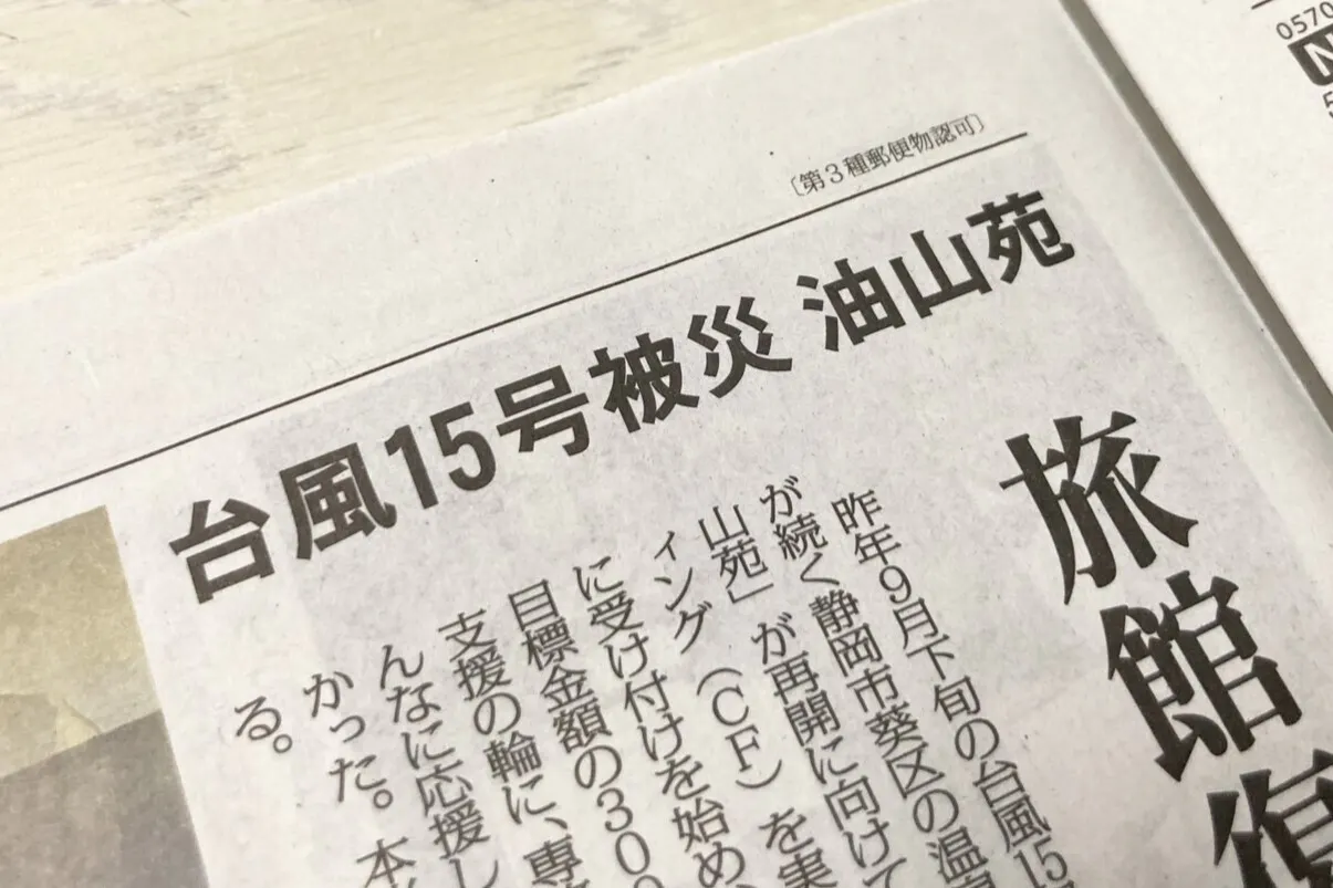 台風15号被災、油山苑 旅館復興、広がる善意の輪 支援金440万円、来年2月再開目指す /静岡 - 毎日新聞