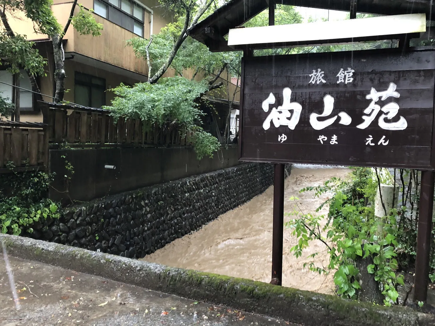 現在は宿の2階へ移動し、気象情報と川の水位に注視しております。