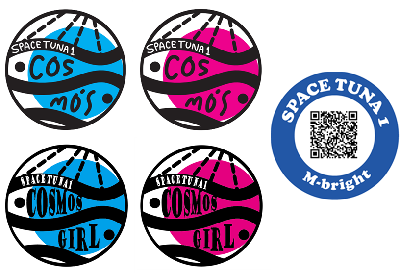 エンブレムのデザインは上記の5種類です。プロダクトには、ご希望のエンブレムを選んでいただけます。左側のエンブレム4種類は、宇宙好き女性団体のコスモ女子がオリジナルにデザインしたコラボプロダクトです。
