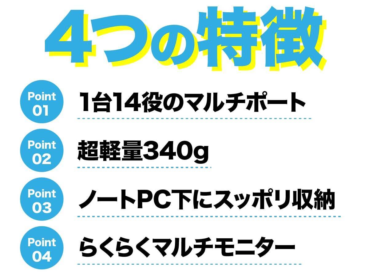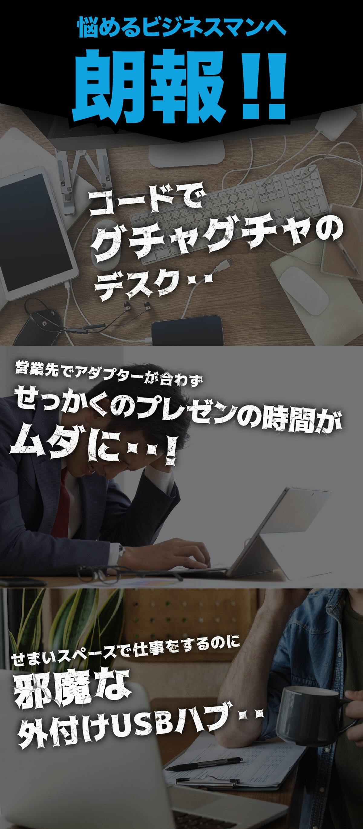 こんな悩みやストレスを解決するため、良い商品はないかと探していたところコンパクトで持ち運びに便利かつノートPCスタンドにもなるUSBハブに出会いました。
