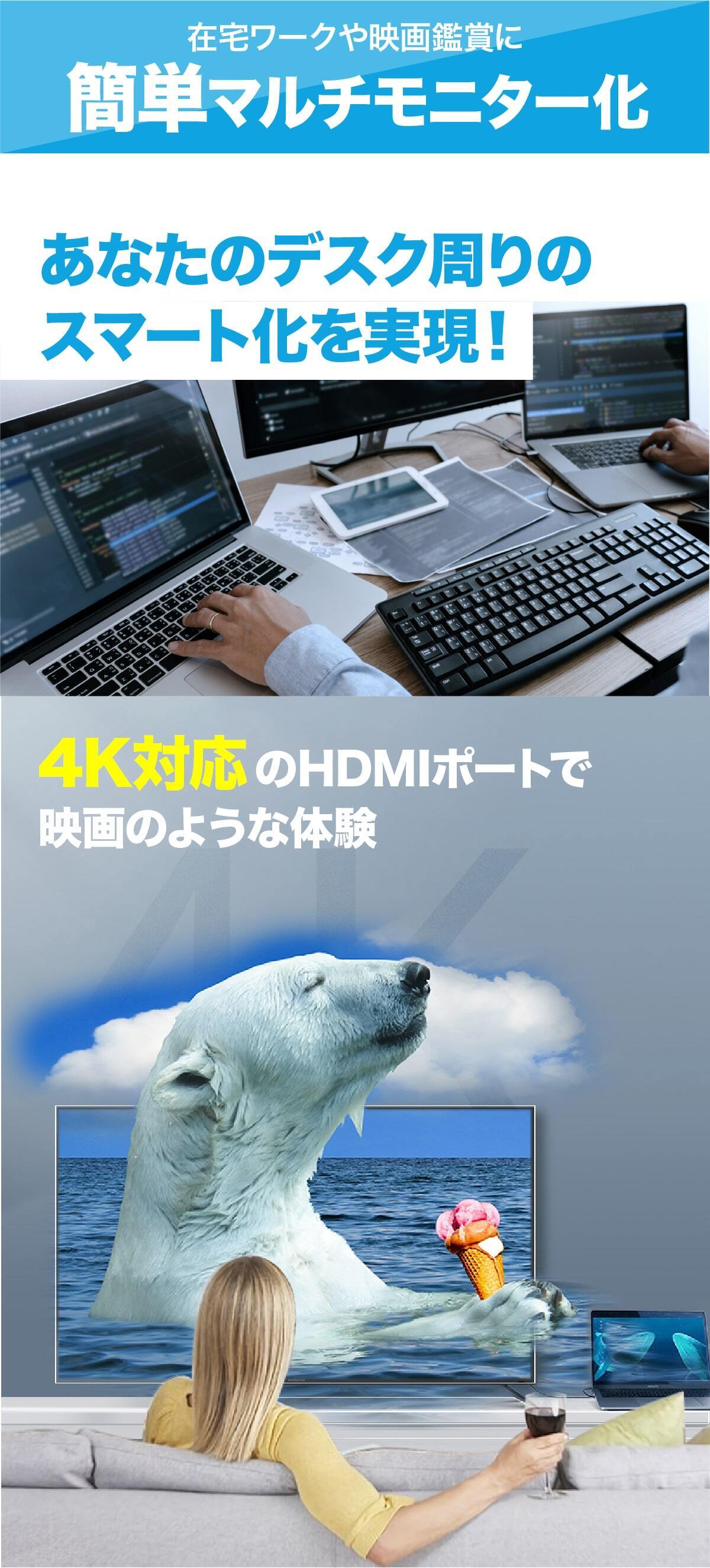 これにより、デスク周りをスタイリッシュに整理し、効率的に作業を行うことができます。