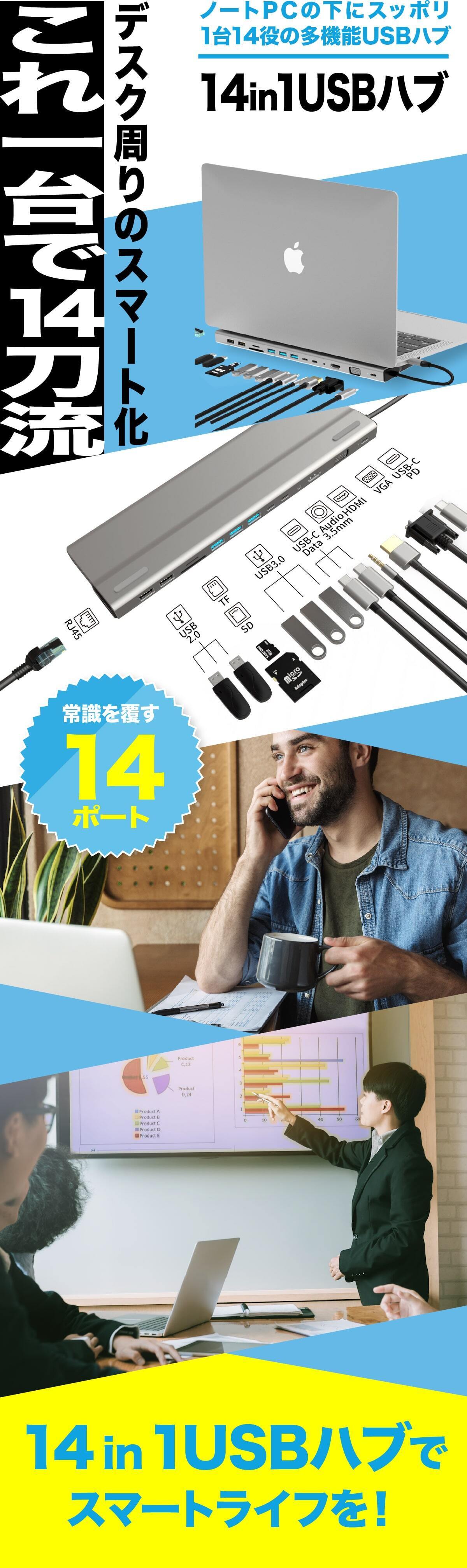 在宅ワーク、オフィス、外出先、どこでも1つあると本当に便利な「14 in 1 USBハブ」を是非日常使いしてスタイリッシュかつスマートに作業効率を上げて欲しい!