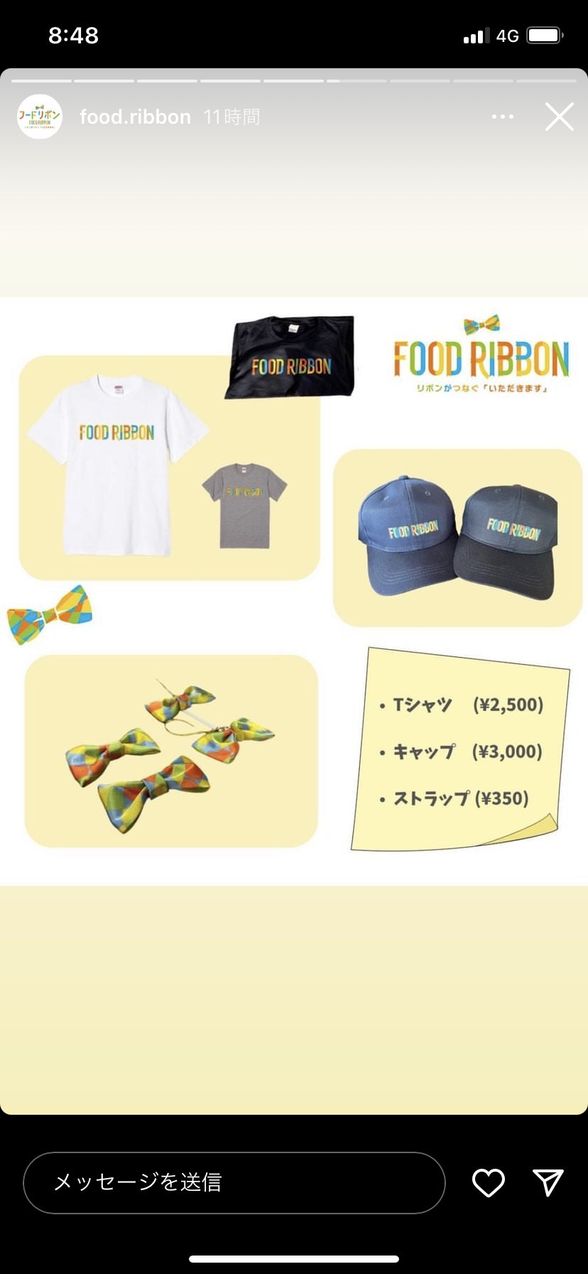 また、フードリボン様でグッズの販売をされておりまして、私はキャップを購入させて頂きました。キャップが届きましたら営業中着用し、フードリボンの活動を多くの方に知ってもらう為発信して参ります。