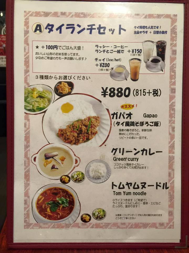 当時のメニュー 毎日のように”トムヤムヌードル”食べにくるお客様もいました