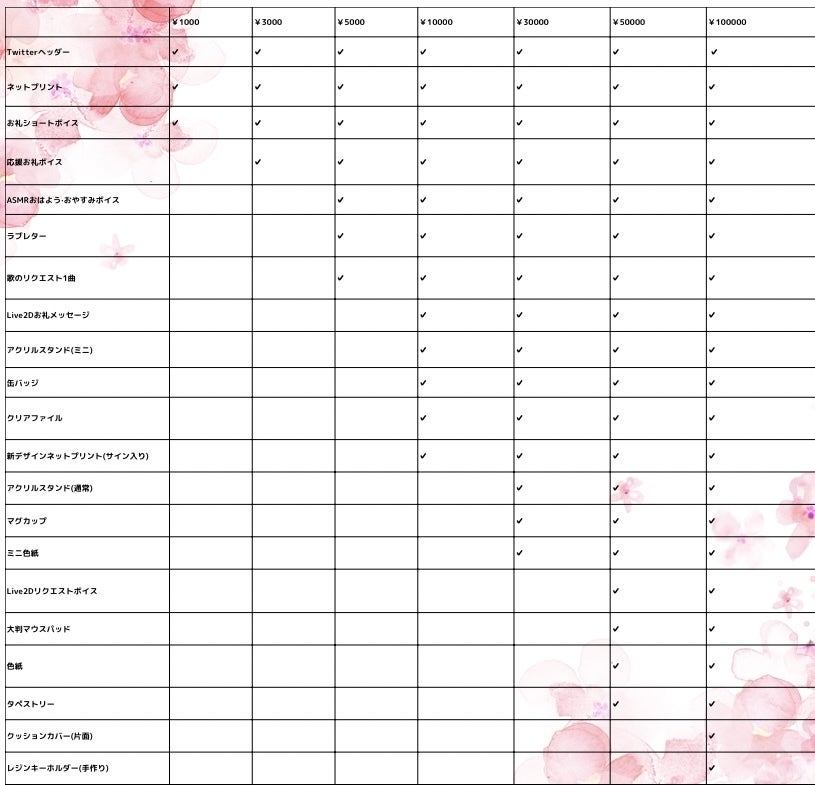 10000▶︎ヘッダー ・ネットプリント(デジタル)・お礼ショートボイス・応援お礼ボイス・【ASMR】おはよう・おやすみボイス・ラブレター(デジタル)・【クラファン限定】Live2D付きお礼メッセージ・アクリルスタンド(ミニキャラ)・缶バッジ・クリアーファイル・新デザインネットプリント(執筆サイン入り)・歌のリクエスト(1曲)
