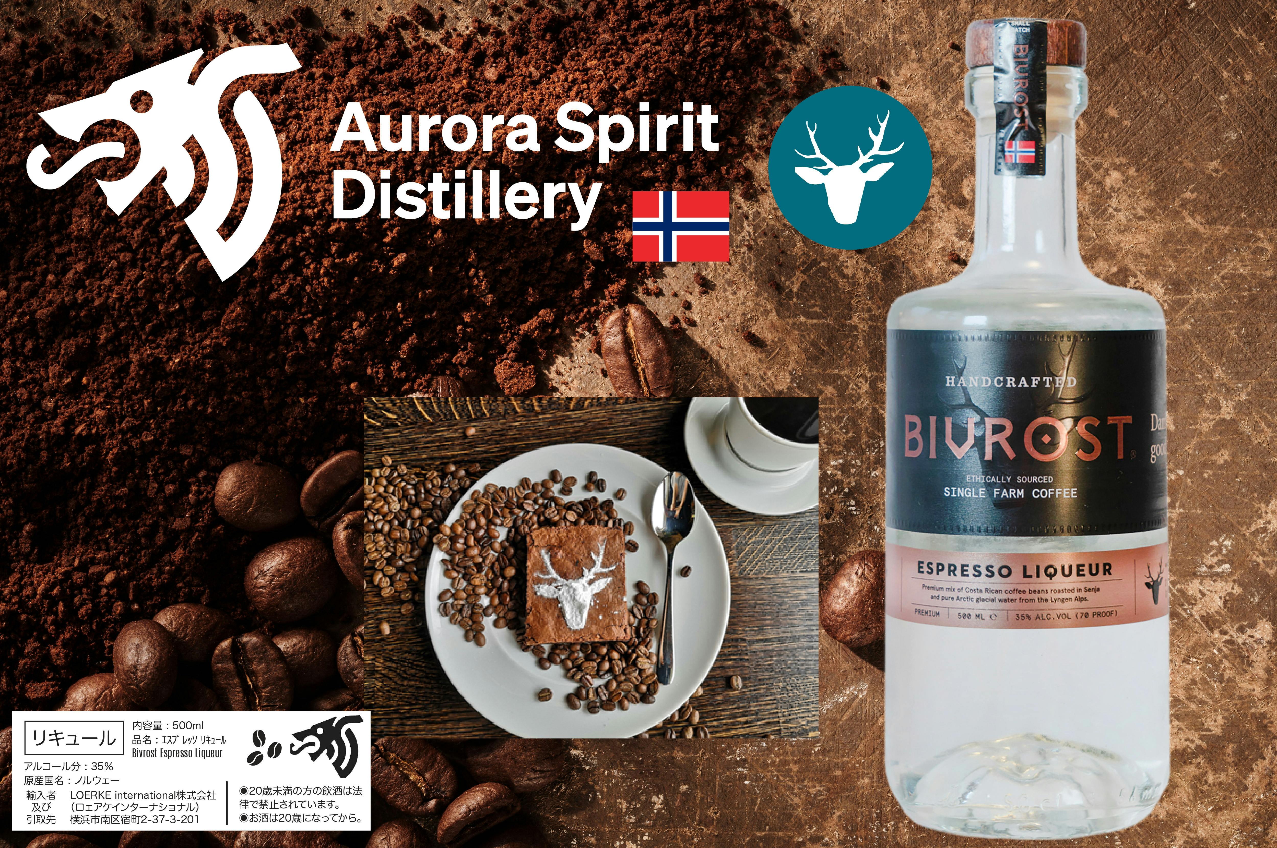 淹れたての深いエスプレッソの香りと芳ばしい苦味を存分に感じるビヴロスト エスプレッソ リキュールは、ノルウェー北極圏のセンヤ島にある「Senja Roasters」の焙煎コーヒー豆を使い、同じくノルウェー北極圏に位置する世界最北端の蒸溜所「オーロラ·スピリット蒸溜所」が丁寧に手作りしている。
