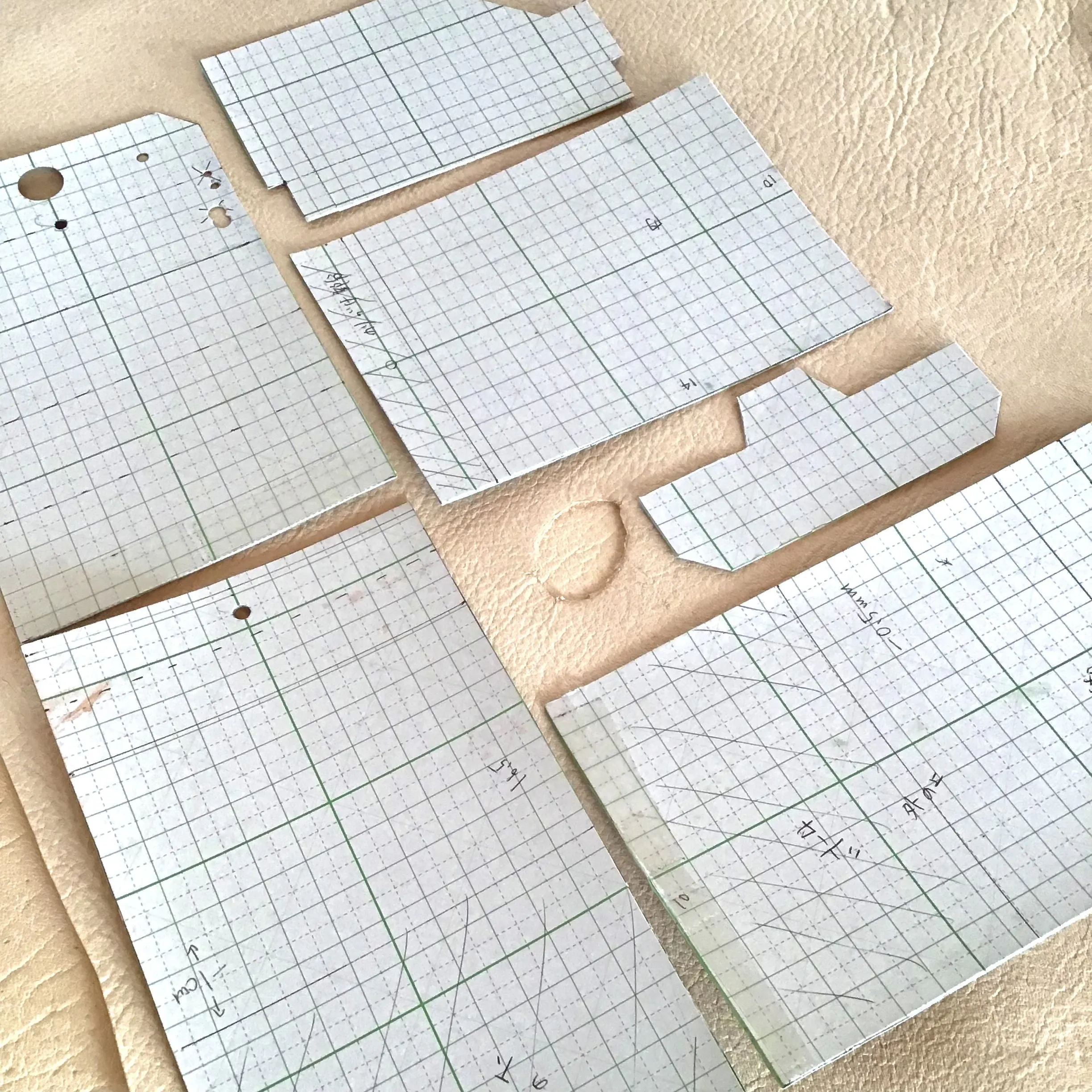 出来るだけ革を無駄にしないために、パーツを細かく分け、