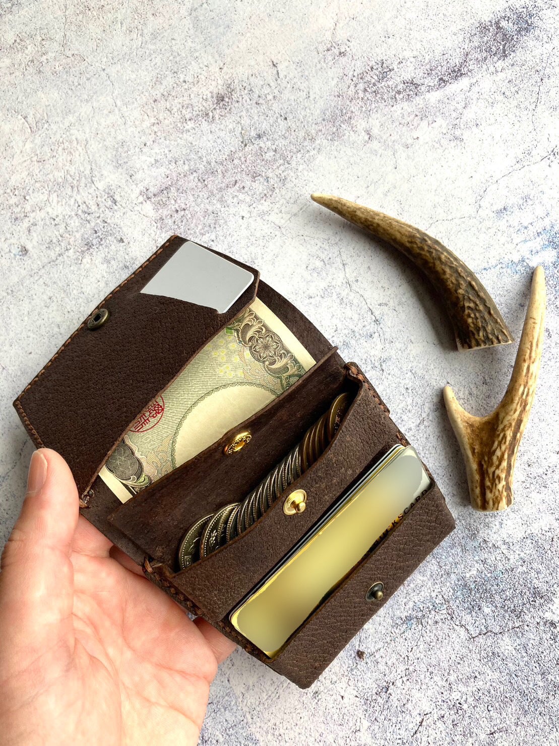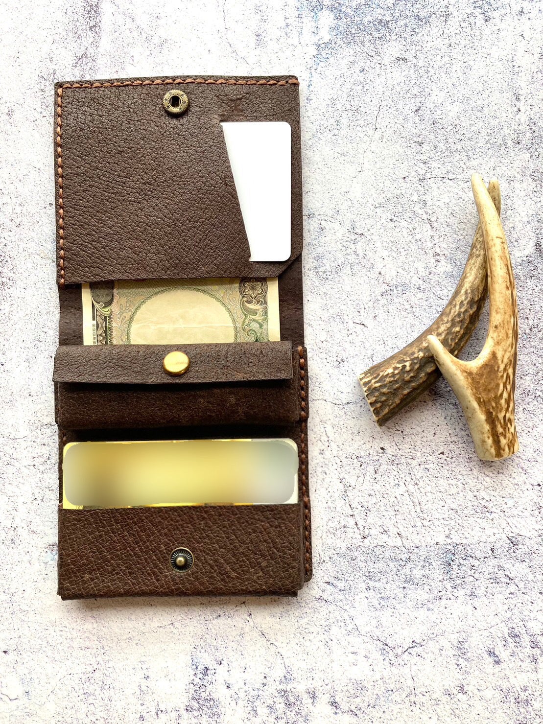 【鹿革】三つ折りコンパクト財布 ¥19800