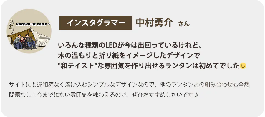 私は、美しい自然環境を守ることができる照明を開発し、アウトドア愛好家たちの心をつかむことができると確信しています。OMLAMPによって、より快適なアウトドアライフを送ることができることでしょう。