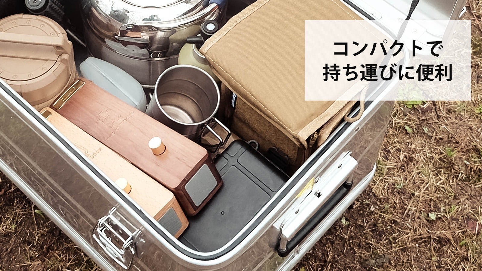 キャンプでは、調理スペースから焚火スペースへの移動時も、ポケットに入れての持ち運びが可能です。