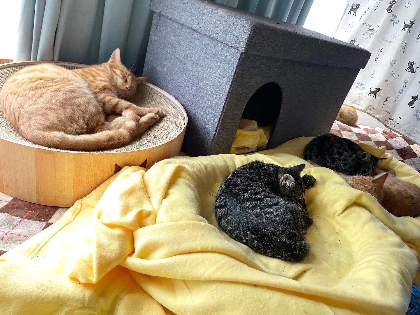 ↑今ではフードもモリモリ食べて元気になって、皆と一緒にお昼寝しています。