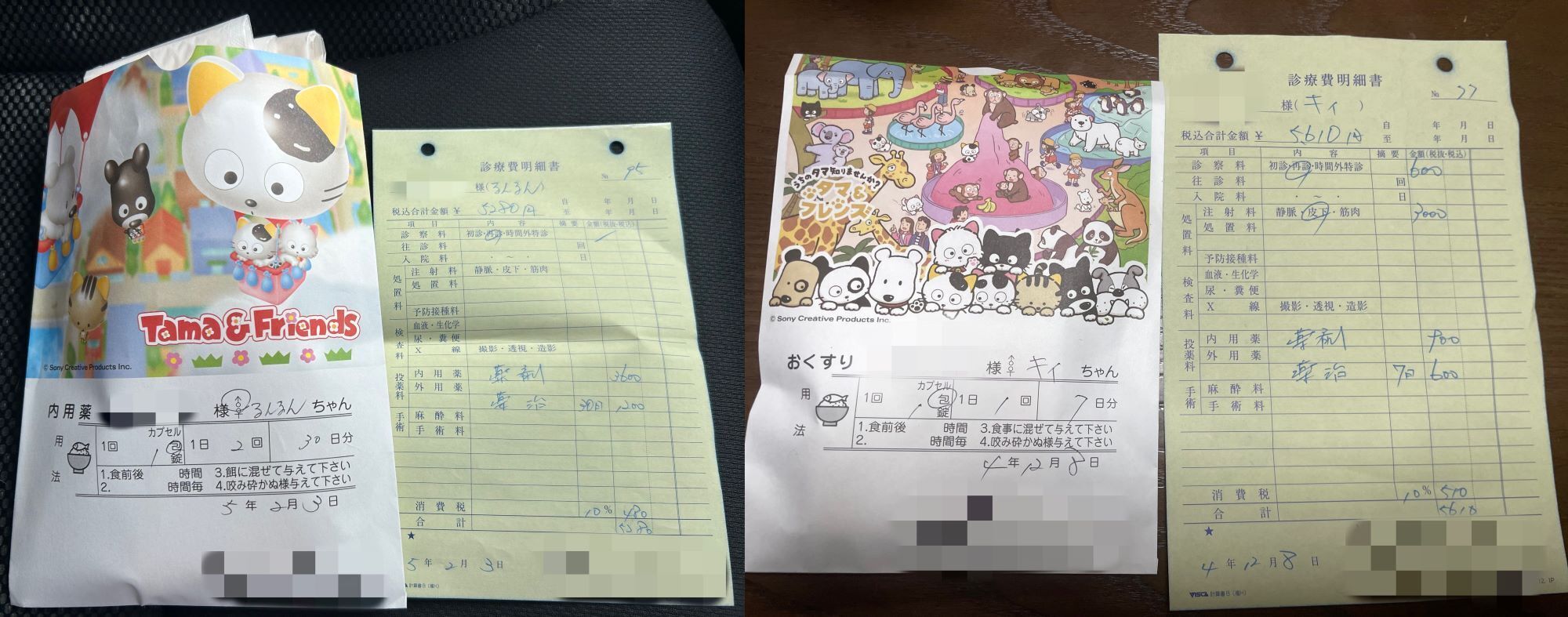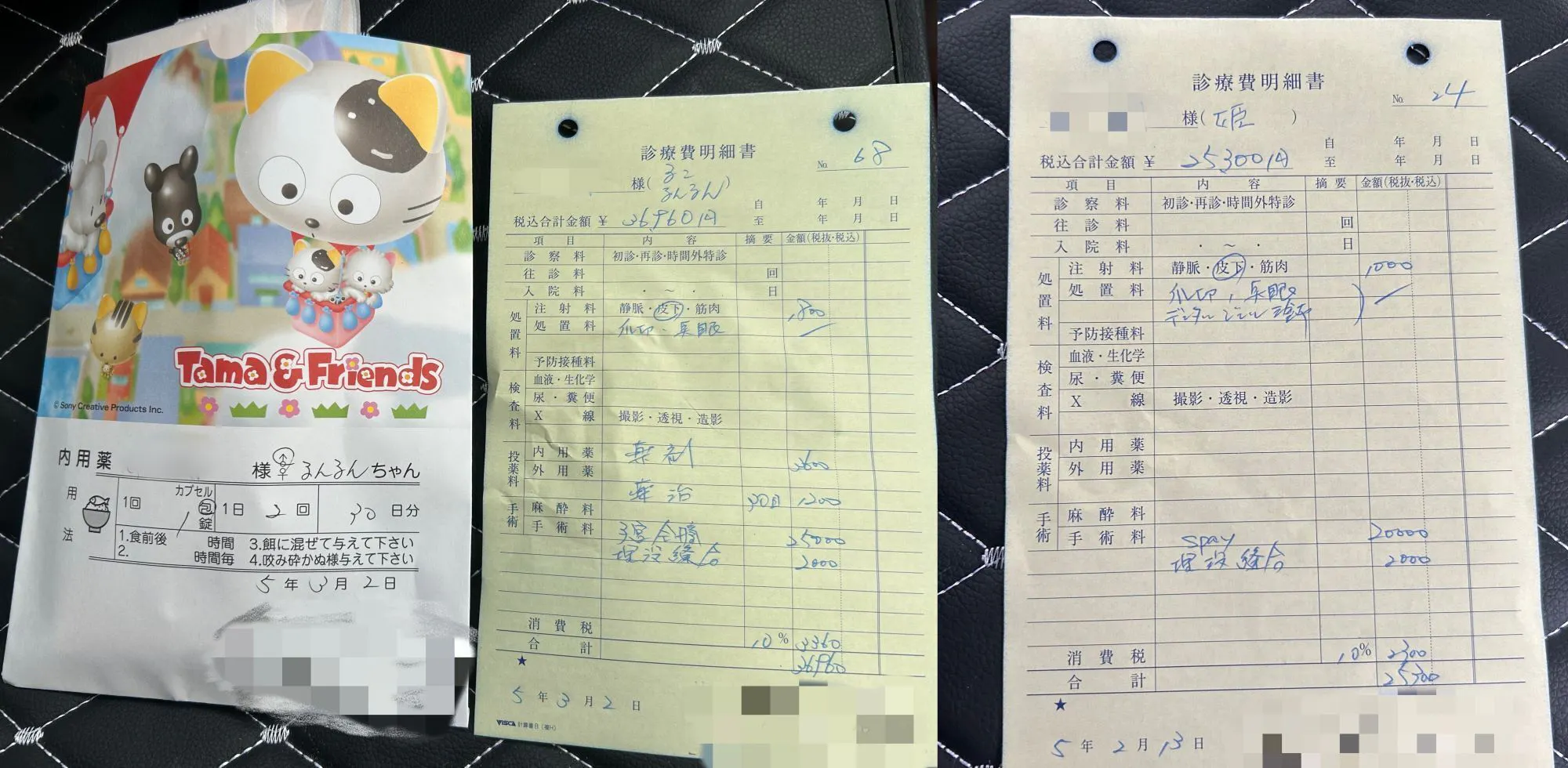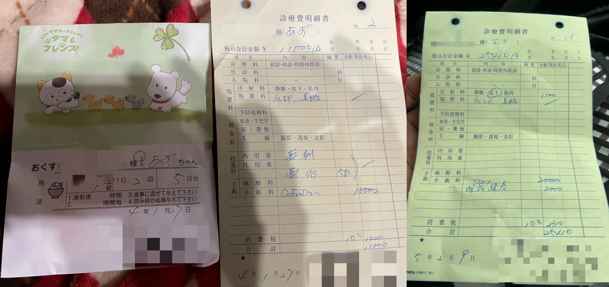 写真は去年から今年にかかった治療費、手術費の一部です。