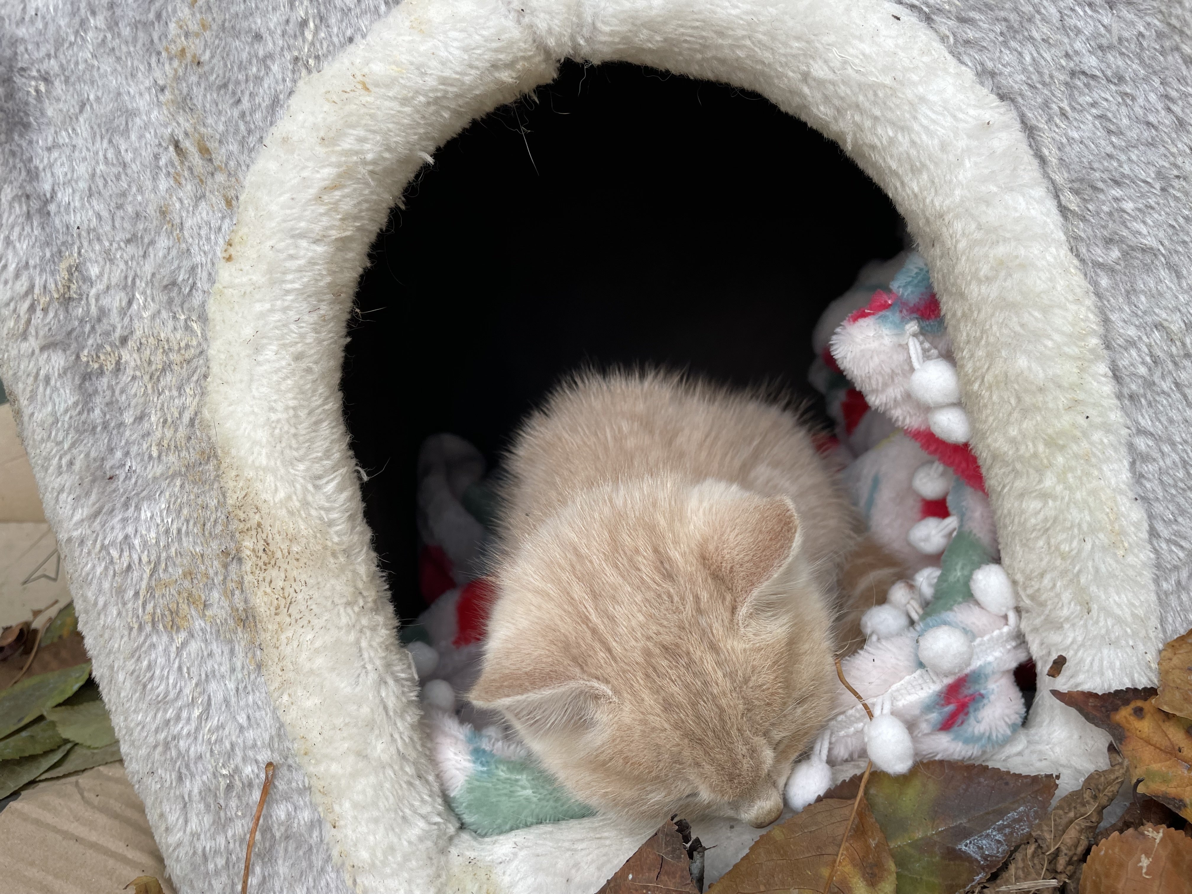 野良猫さんが寒さを凌げるように用意しておいたBOXに子猫が入っているのを見つけました。
