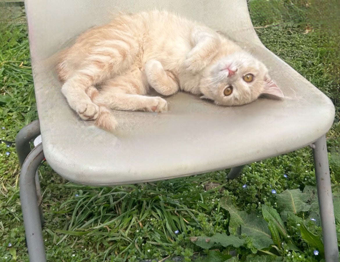 寒くなって動けなくなっていたみるくちゃんを保護して低体温になっていたため急いで暖め、その後は子猫用ミルクで育てました。