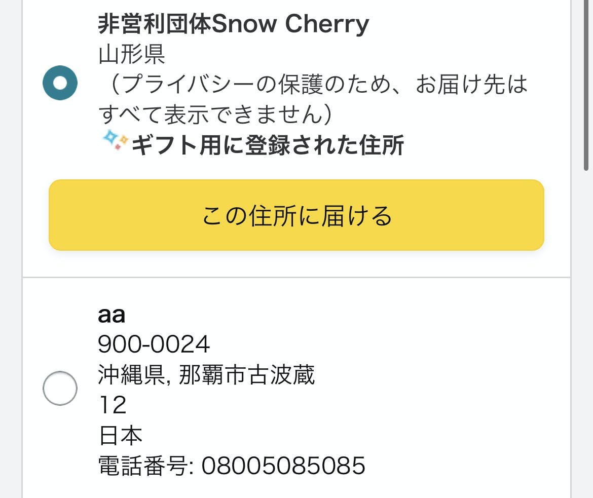 配送先はSnow Cherryを選択してください。