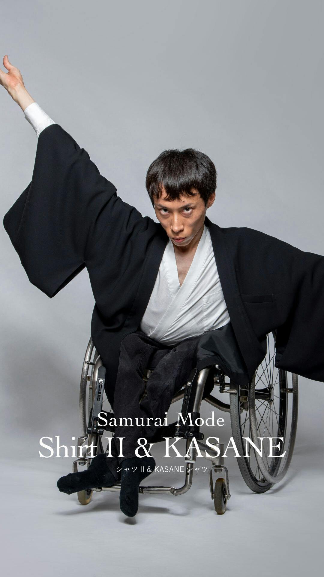 Takが着ている重ね襟モチーフの「KASANEシャツ」は本プロジェクトにもリターンとしてご用意しております。