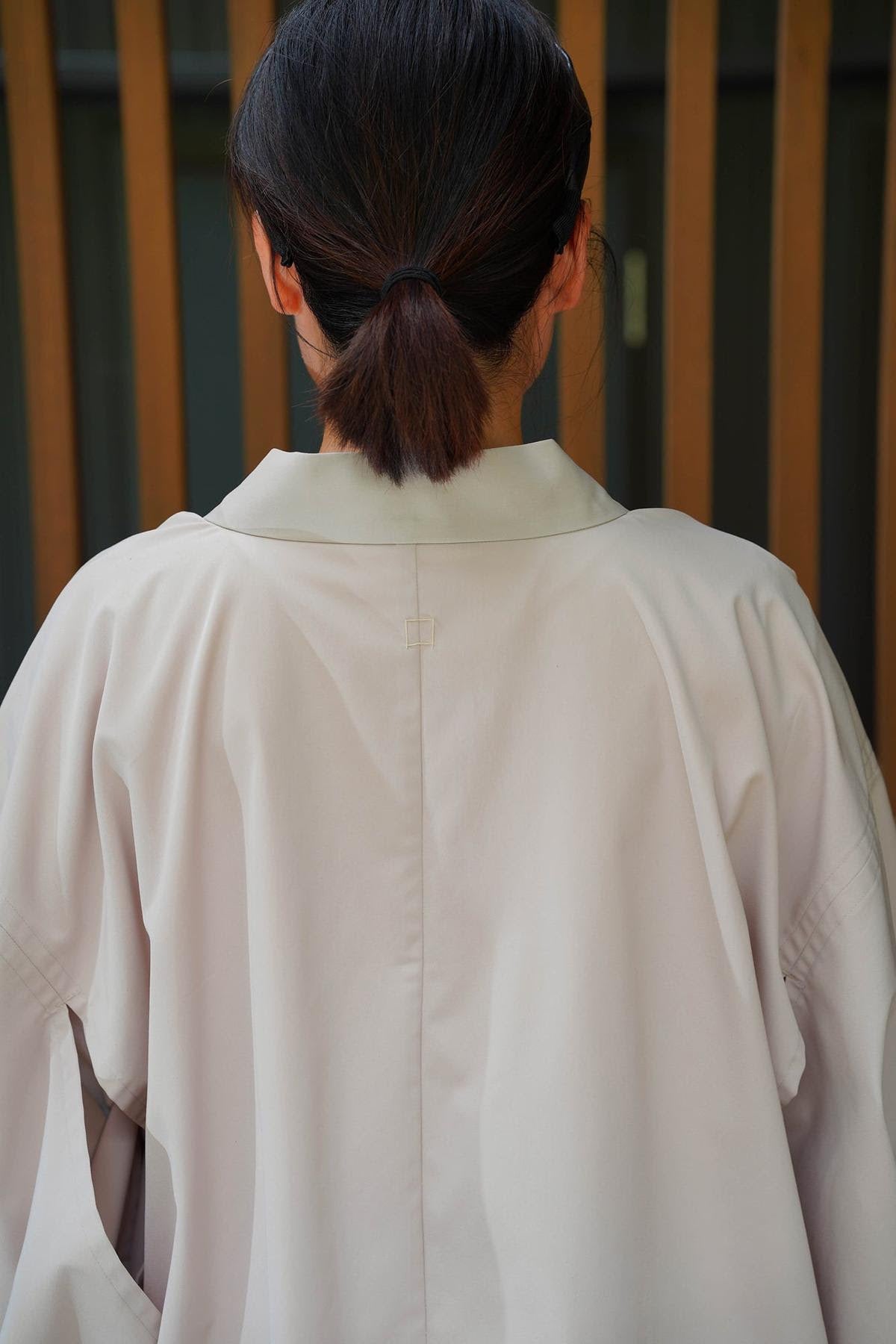 Kimonoガウンの背中に一針一針職人がKUDENのロゴマーク(もしくは口伝の口の字の意味)を今後はKUDENの服に縫い込んでいきます。