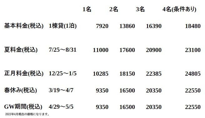 室内禁煙、門限無し、駐車場1台無料(2台以上は要相談)