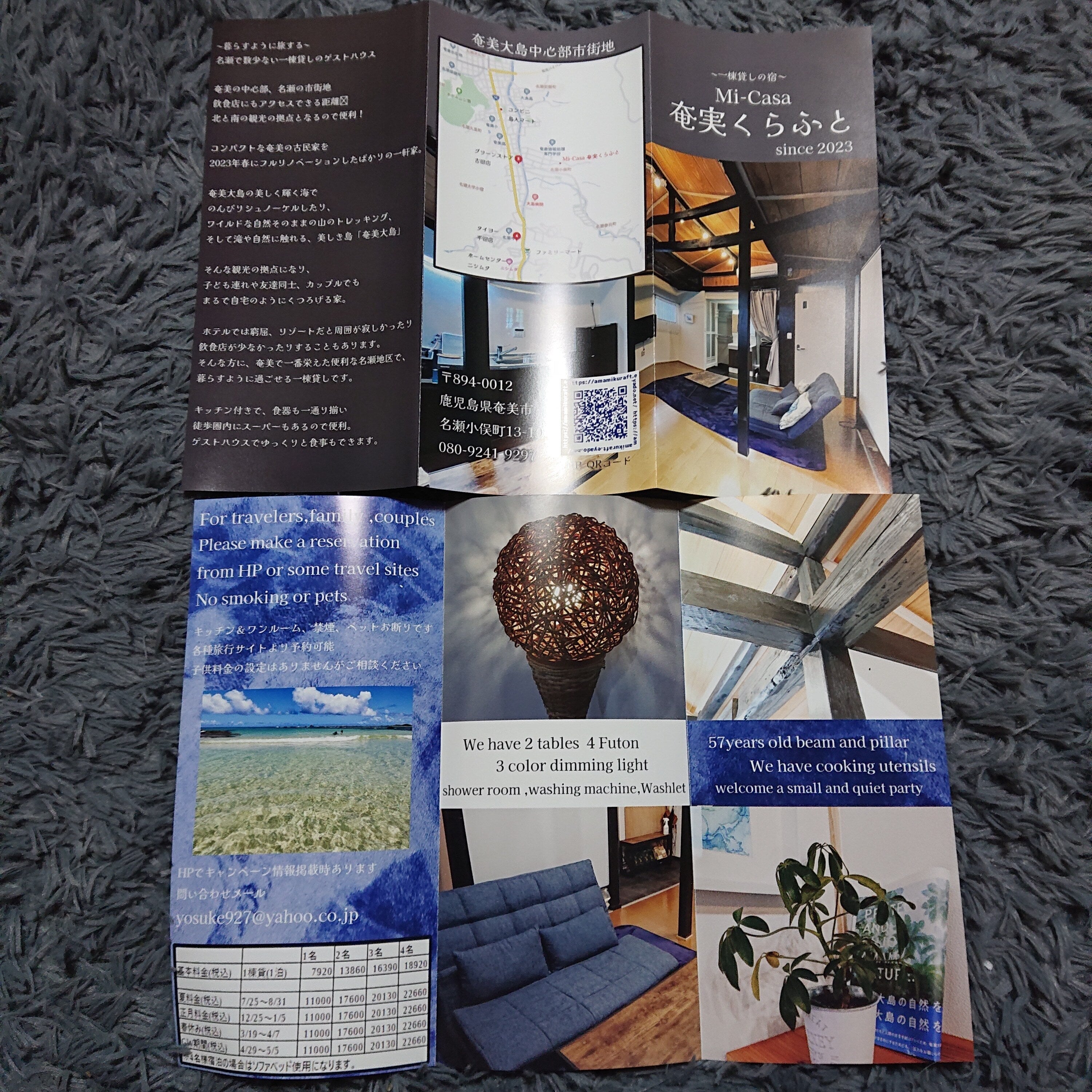 2023/06/13 18:42パンフレットがようやく完成しましてやっと返礼品の準備がととのって来ました。お茶の皆さまは、現在乾燥中なのでもう少々お待ちください。パッション&サイダーは順次お送りしてまいります。旅行サイトに登録され夏の予約は半分程度埋まってきました。宿泊権支援の皆さまはメッセージをいただければ日程の確認をします。アゴダ、airbnb、vacationstayなどで確認も可能です。到着まで少々お待ちくださいませ! もっと見る