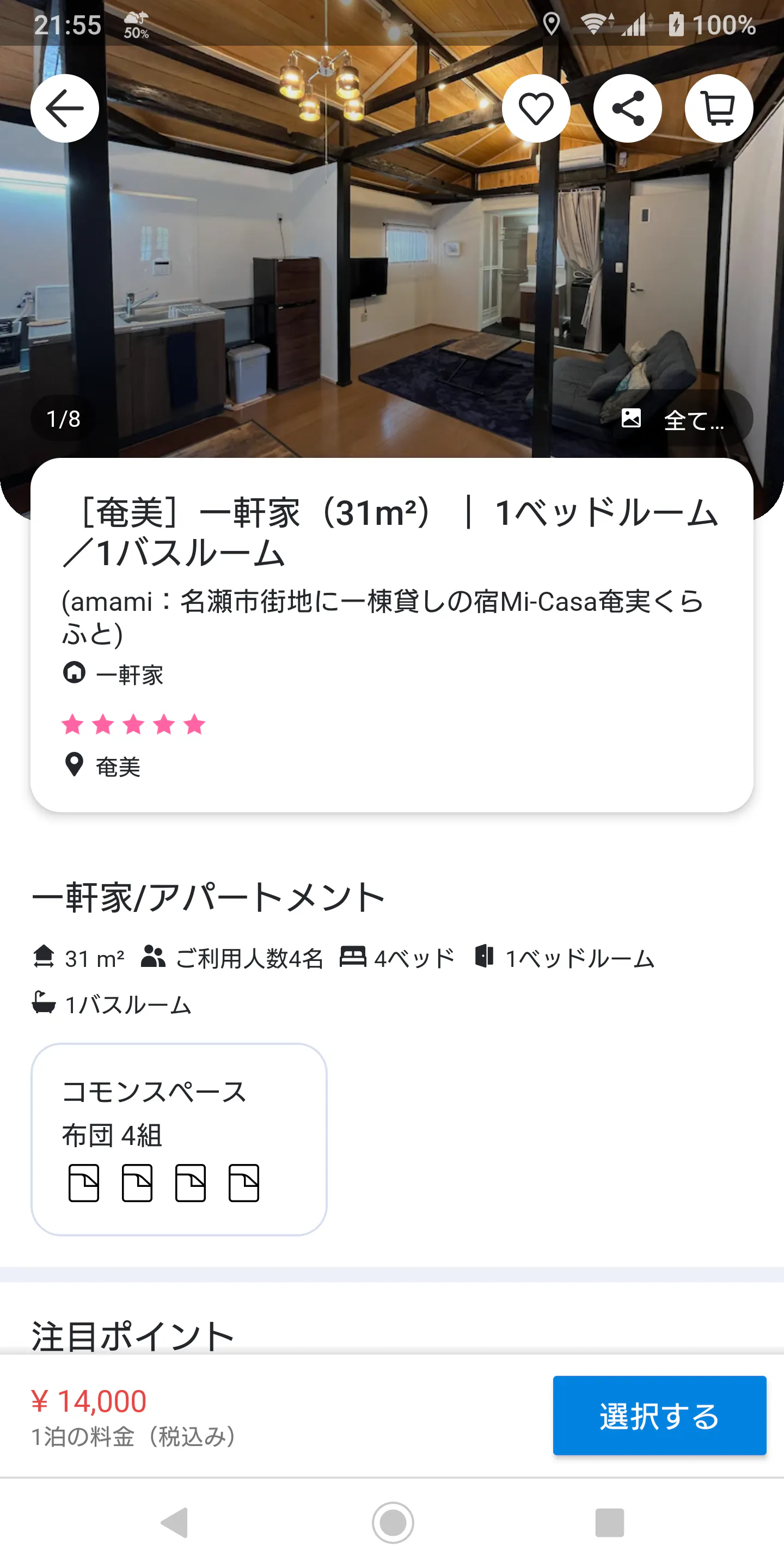 名瀬で数少ない一棟貸しの宿
