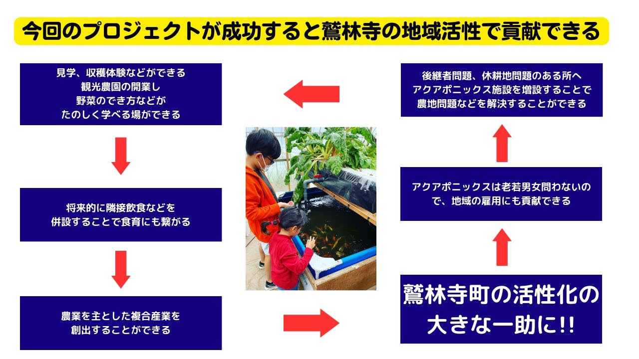 私が目指すのはこの地域をアクアポニックスで有名にし、雇用を創出する事で地元で活躍する人、新規就農者を増やし、地域に活性化に貢献することです。