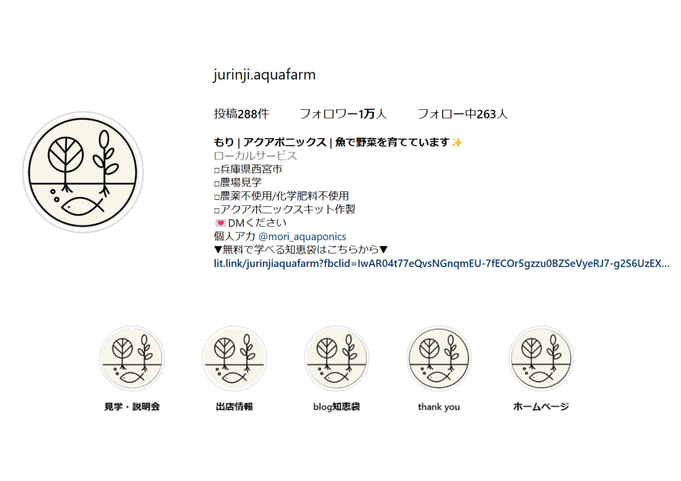 Instagramでは【もり @jurinji.aquafarm 】でアクアポニックスに関する情報を発信しています。