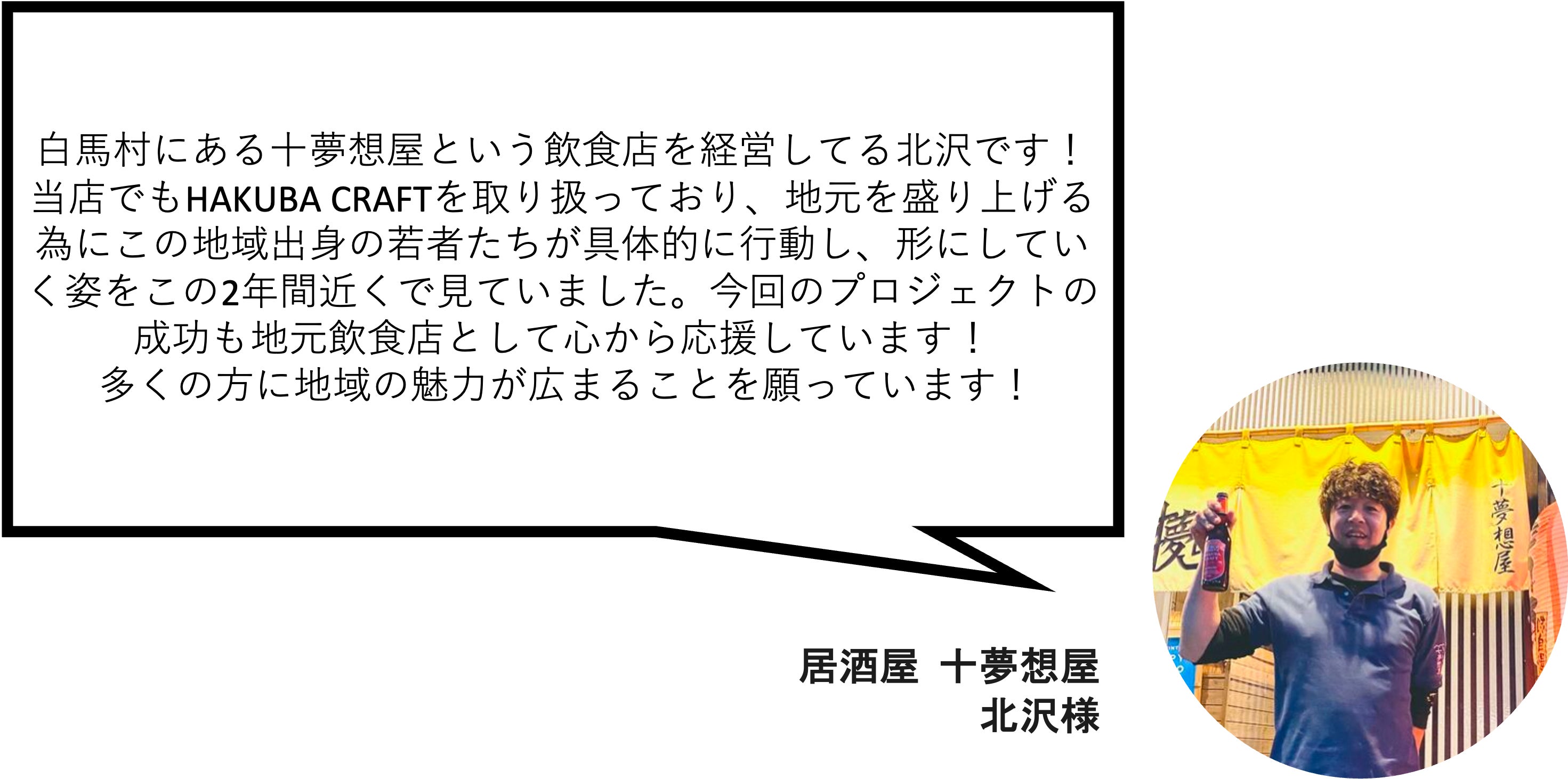 2025/01/01 14:52クラウドファンディングご支援者の皆様新年、あけましておめでとうございます。旧年中は私達の活動を暖かく見守っていただき誠にありがとうございました。新工場建設プロジェクトにつきましては、着々と準備を進めておりして、白馬村内に最有力候補が決まりましたことご報告申し上げます。古くからある建物をリノベーションし、クラフトビールの醸造所として生まれ変わる予定でございます。当初のスケジュールより大きく遅れてしまっており、ご心配おかけしてしまいましたこと誠に申し訳ございません。現在、2025年の春からの施工に向けて設計会社様とお打ち合わせ、醸造機材の選定及び調達を行っております。皆様より頂戴したご支援金額につきましても予定通り缶充填機に充当させていただきます。年末のご報告となりましたが、今後ともHAKUBA CRAFTをどうぞ宜しくお願いいたします。reth株式会社田口、村田、田中 もっと見る【御礼】ご支援と温かいメッセージありがとうございました!