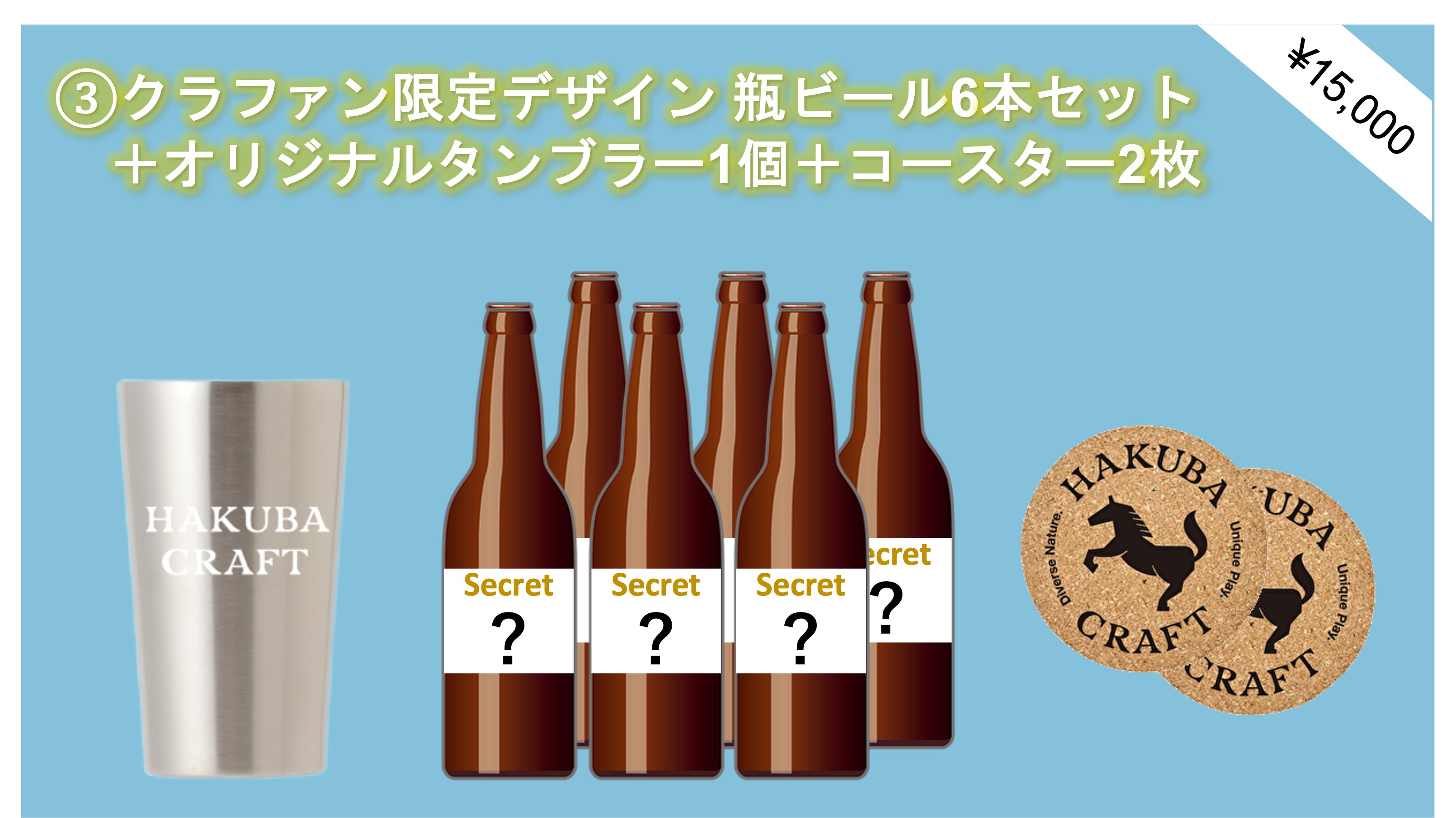 今回のプロジェクトで皆様にご支援いただきました支援金は、なるべく新工場の建設費用、ひいては世界中の人々にHAKUBA CRAFTを楽しんでもらう資金に充当したいと考えております。なので、「クラフトビールを割引で購入できる」というような、割引やお得感の詰まったリターンのご用意はございません。