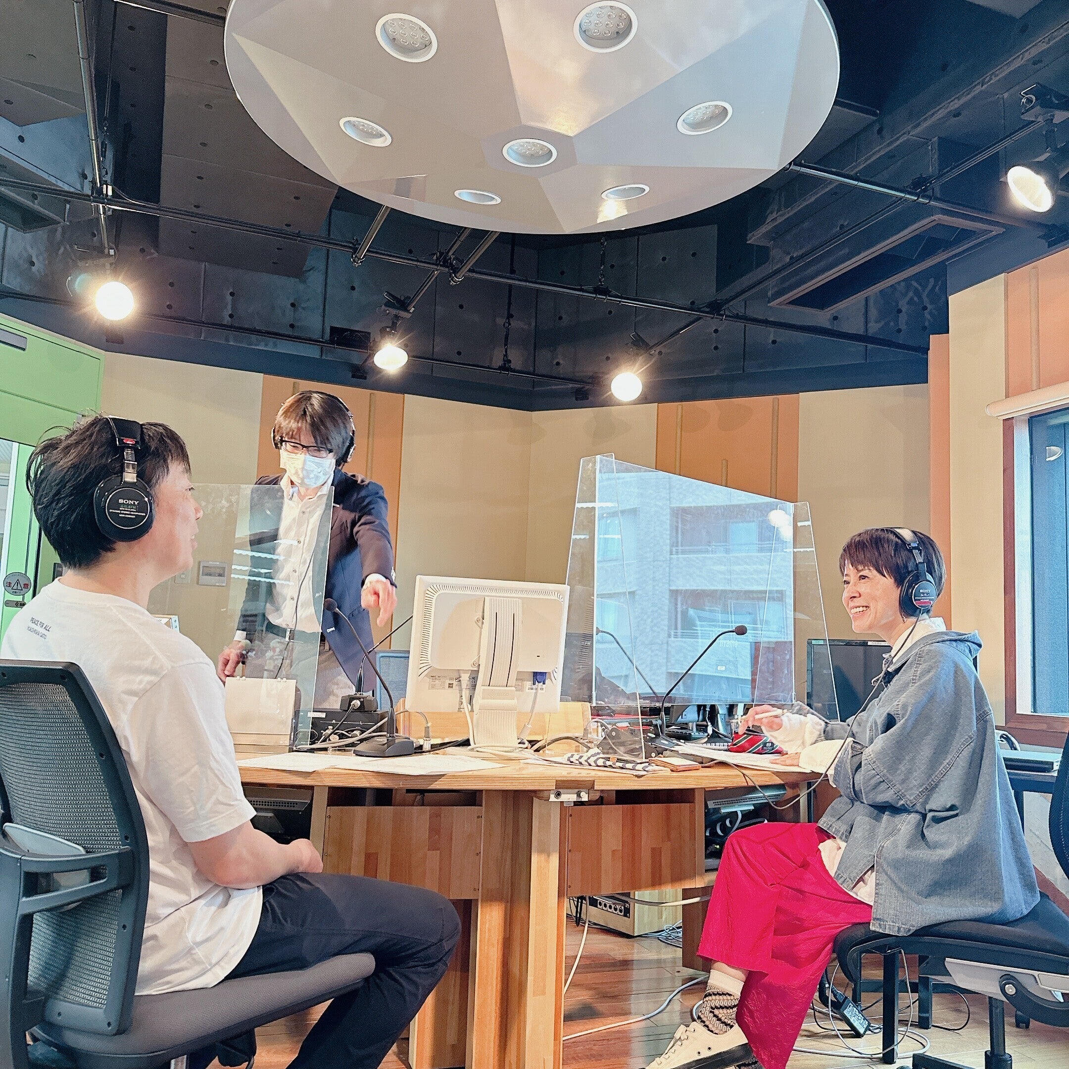 左から小松田あこ様(パーソナリティ)、菅野、佐藤様(プロデューサー)