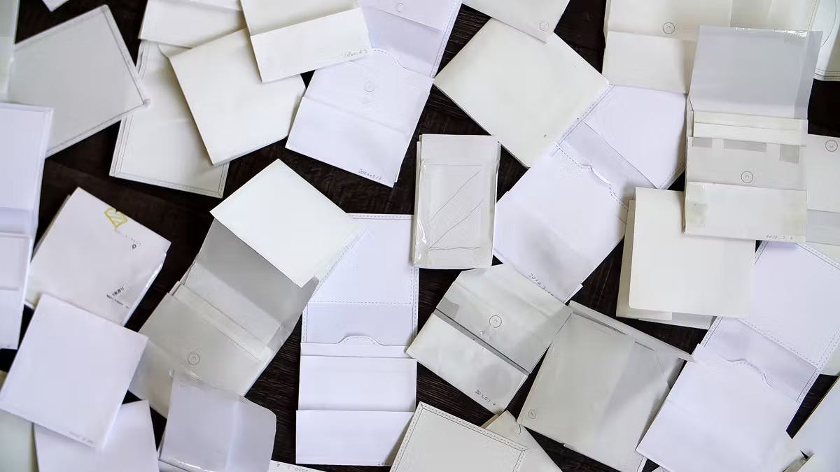 紙で試作を重ね、どう使い勝手を良くするかをミリ単位で調整していきました。 財布にとって1mmはとても大きな差です。100個以上の紙模型を作り検討を重ね、その後革で何度も調整を重ねました。特にコイン入れは使いやすさを重視し、最後まで調整しました。」