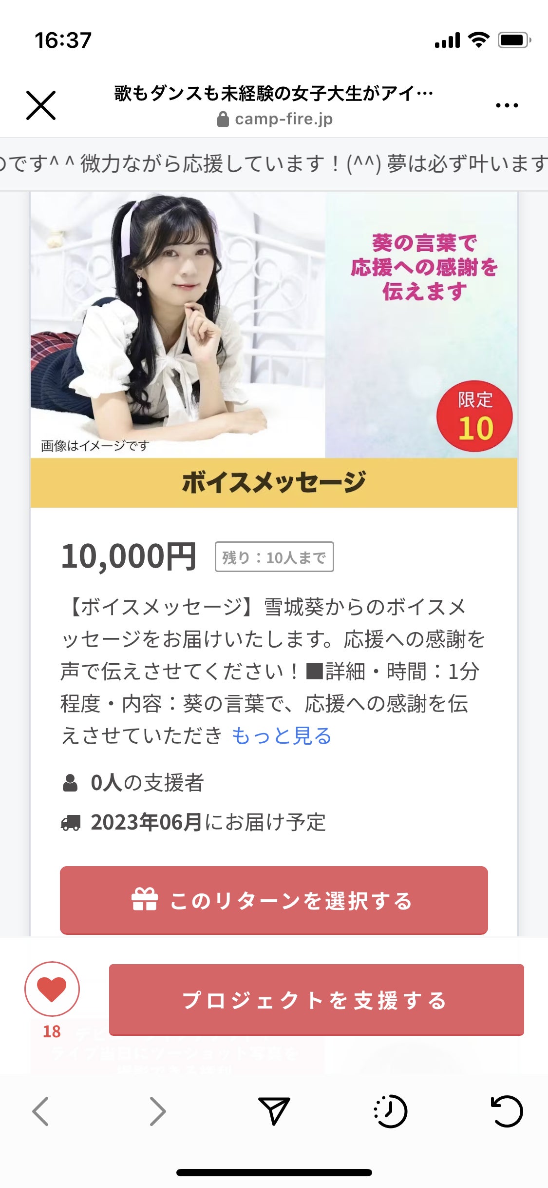 リターン内容文の修正が出来ませんので、今後ご支援をご検討の方はご注意ください。