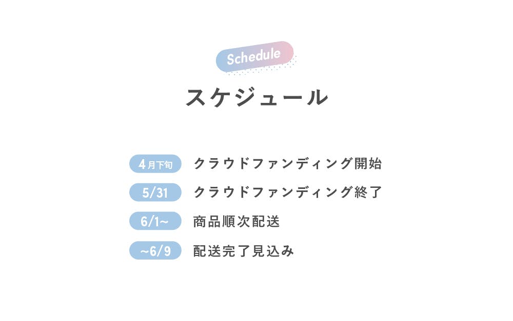 弊社では、支援者様に一日でも早くお届けするため、PJ会期中のご支援の状況に応じて、早めに商品に調達を開始します。