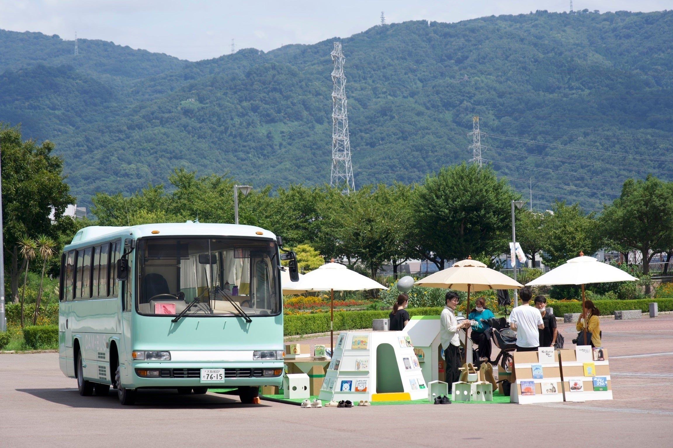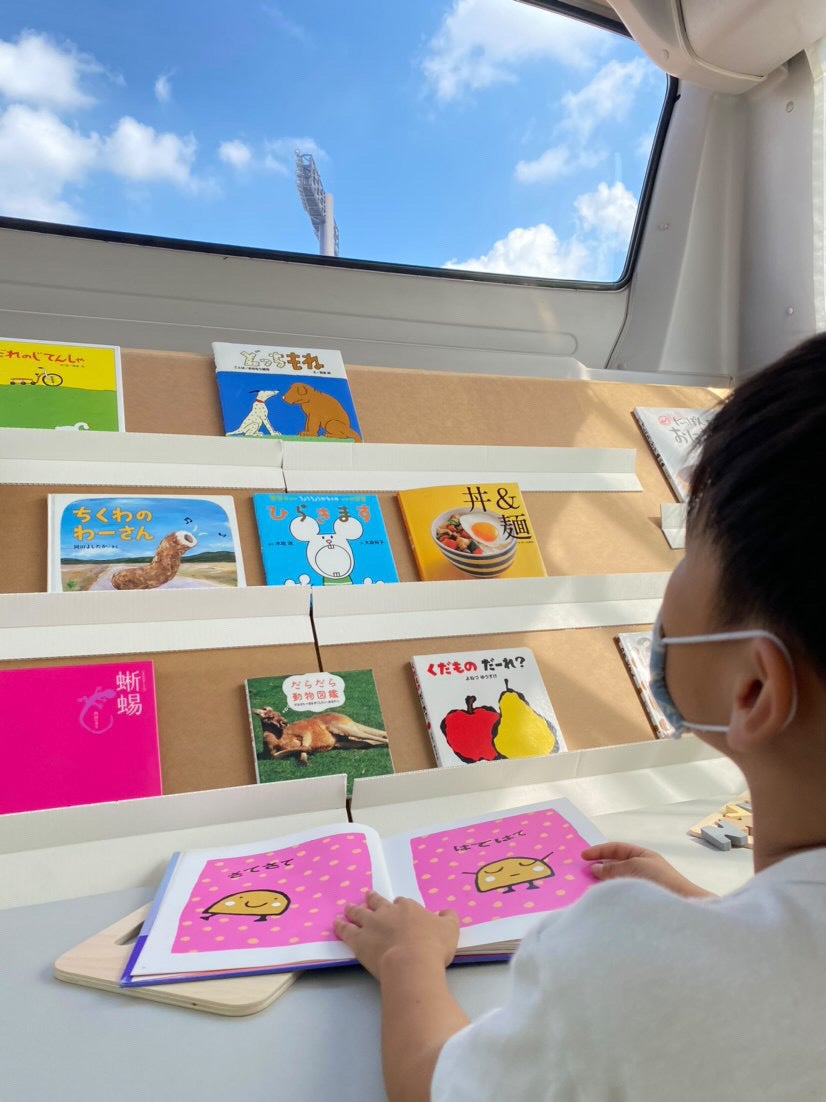 CAM+BUSではたくさんの絵本や積み木、