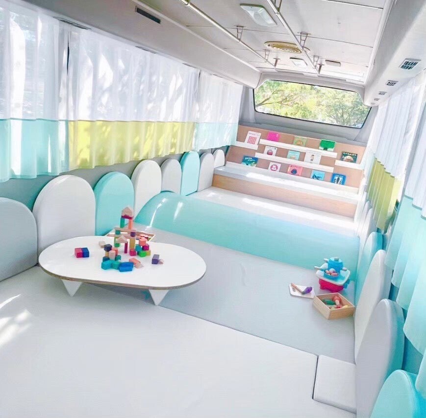 CAM+BUSはバスを改装して作った移動型の託児所。