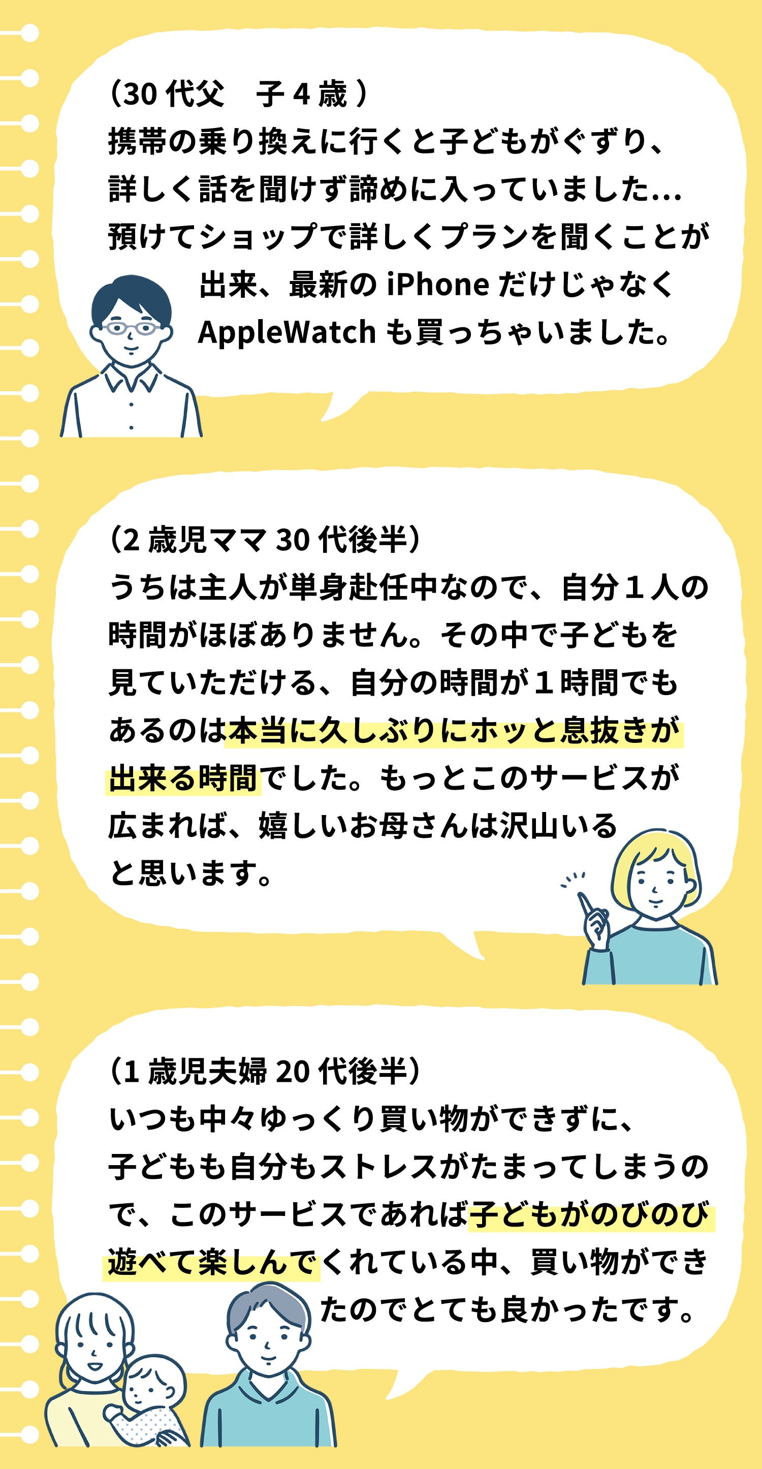 マイホームの展示会など、気軽にお子さんを預けて、自分たちの時間を作れる。