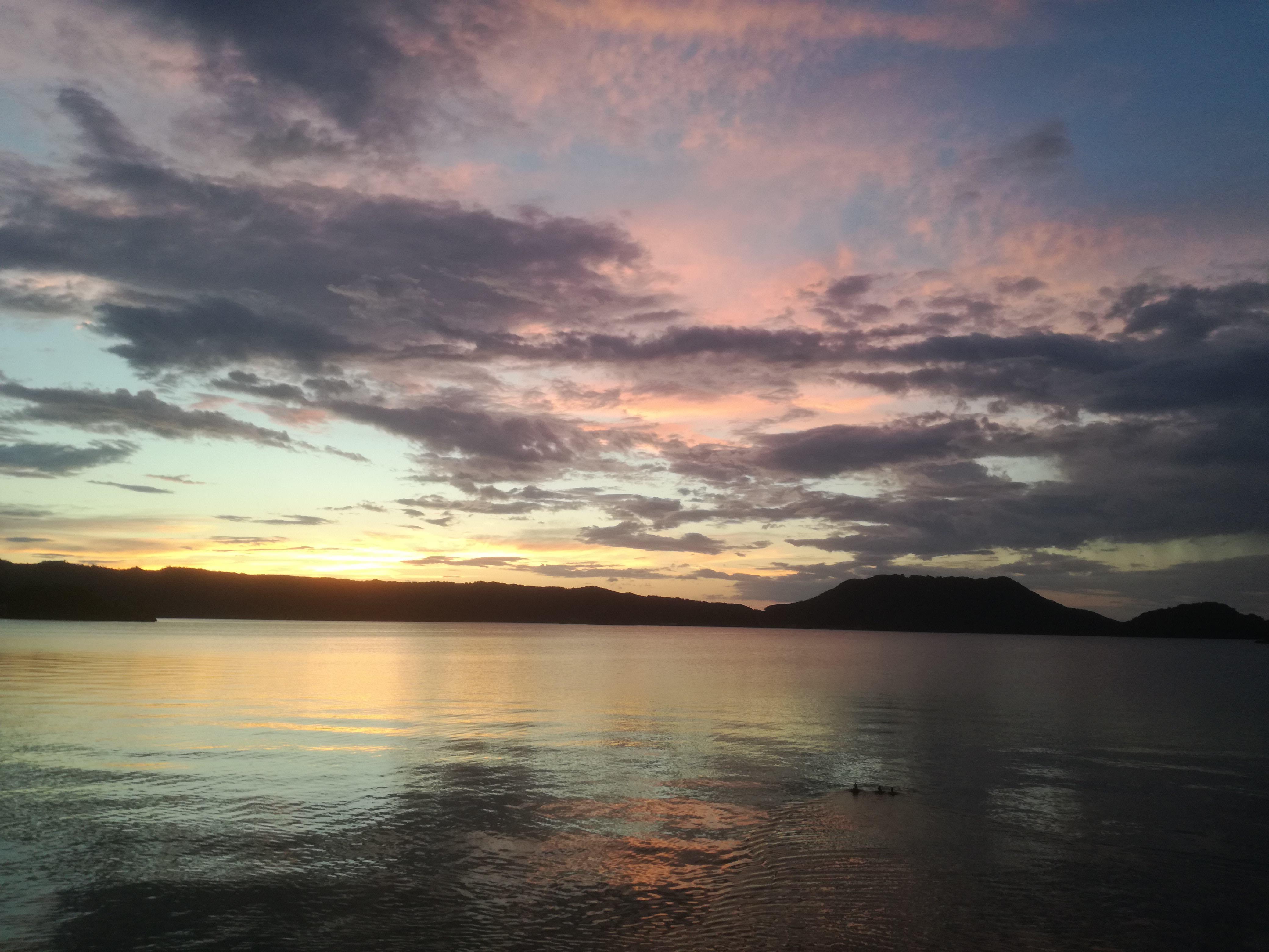 (「パン工房ほとり」から徒歩5分。湖山池の夕日)
