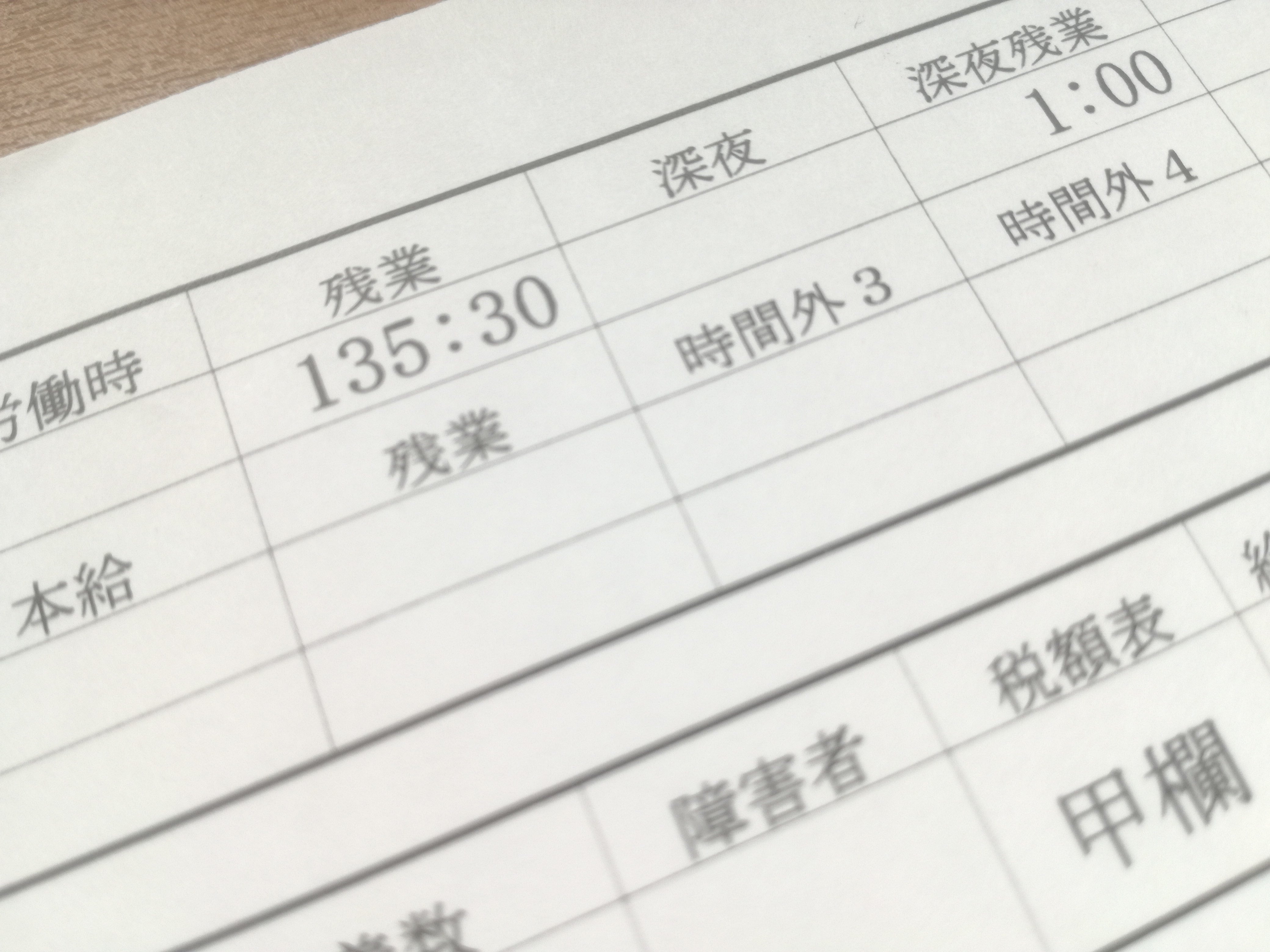 (修行時代の給与明細。多い月では残業は130時間を超えた。)