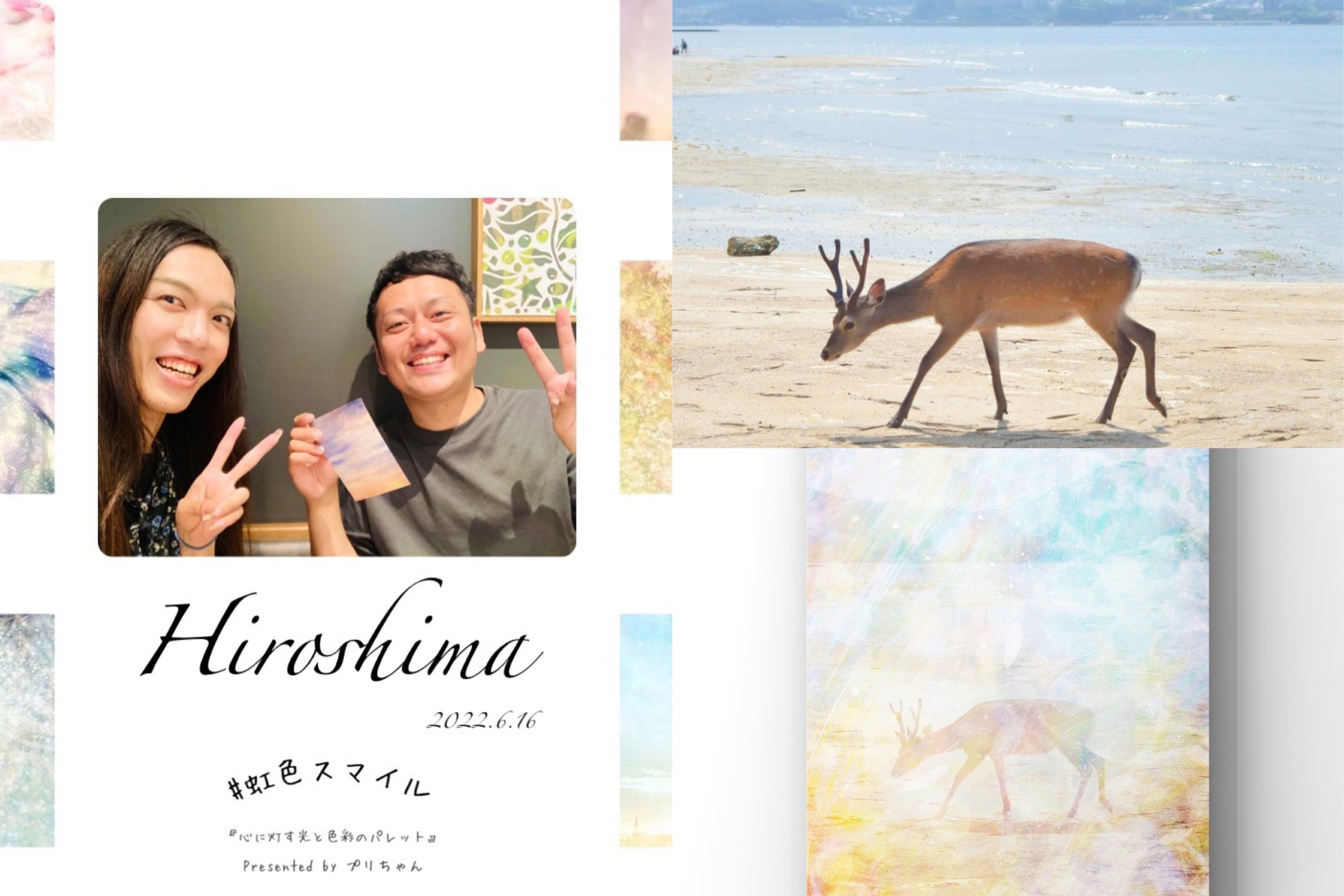 プリちゃんが日本一周されたときに、ご縁あって四国の徳島県に来られた際に実際にお会いできて、いろんな場所で撮った写真にプリちゃんの想いの魔法の光が加わって、作品を見ながら感動感激したのを覚えています(^ ^)