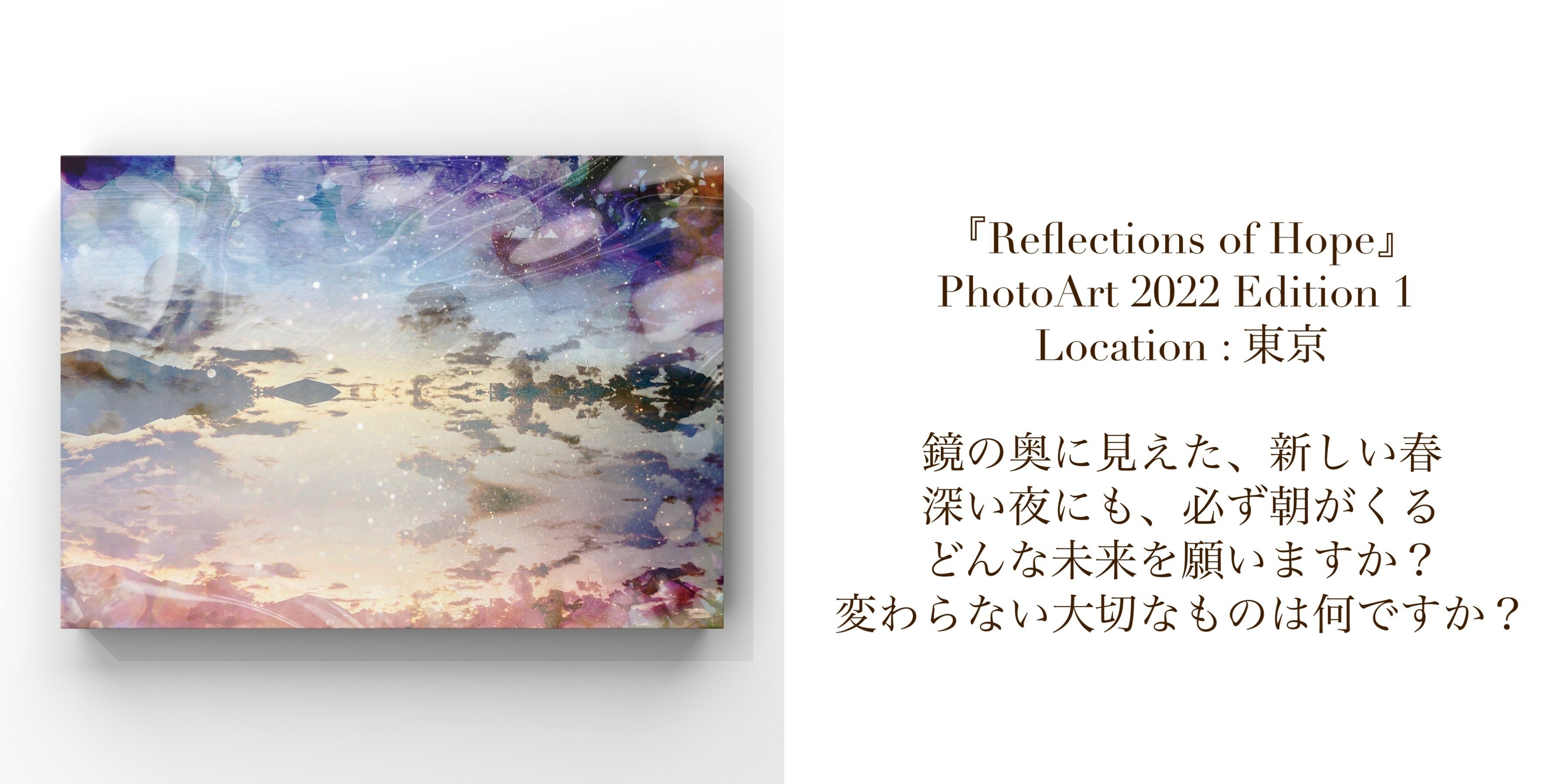 作品の表現方法は、「現実で撮影した写真+光と色彩のデジタルエフェクト」。瞳に映って心奪われた光景・瞬間を写真として切り取り、それに自分の感情や素直な気持ちに耳を傾けながら、無数の光と豊かな色彩魔法をデジタルで添えていく。創る作品は”フォトアート”と呼んでいて、これらは具象と抽象のグラデーションを描いた心象風景でもあります。