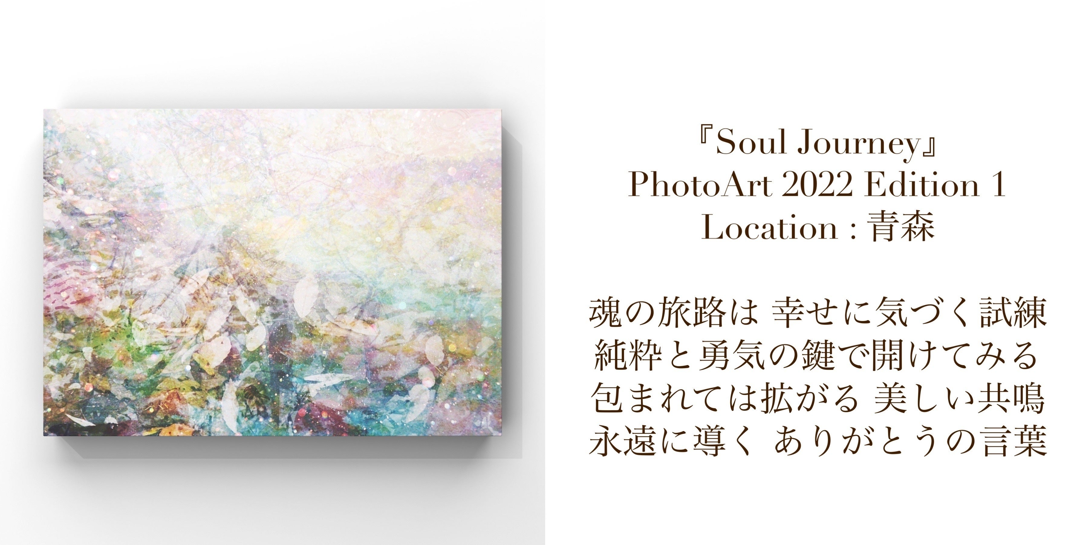 そうして産まれた新作たちが、”Soul Journey(=魂の旅路)シリーズ”です。一年かけて巡り、都道府県ごとに見た光景を撮影・創作。春夏秋冬・四季折々の季節感も作品に反映しています。また、作品一つ一つには、旅先での出来事・感じた心情を基に、"メッセージ"も添えています。