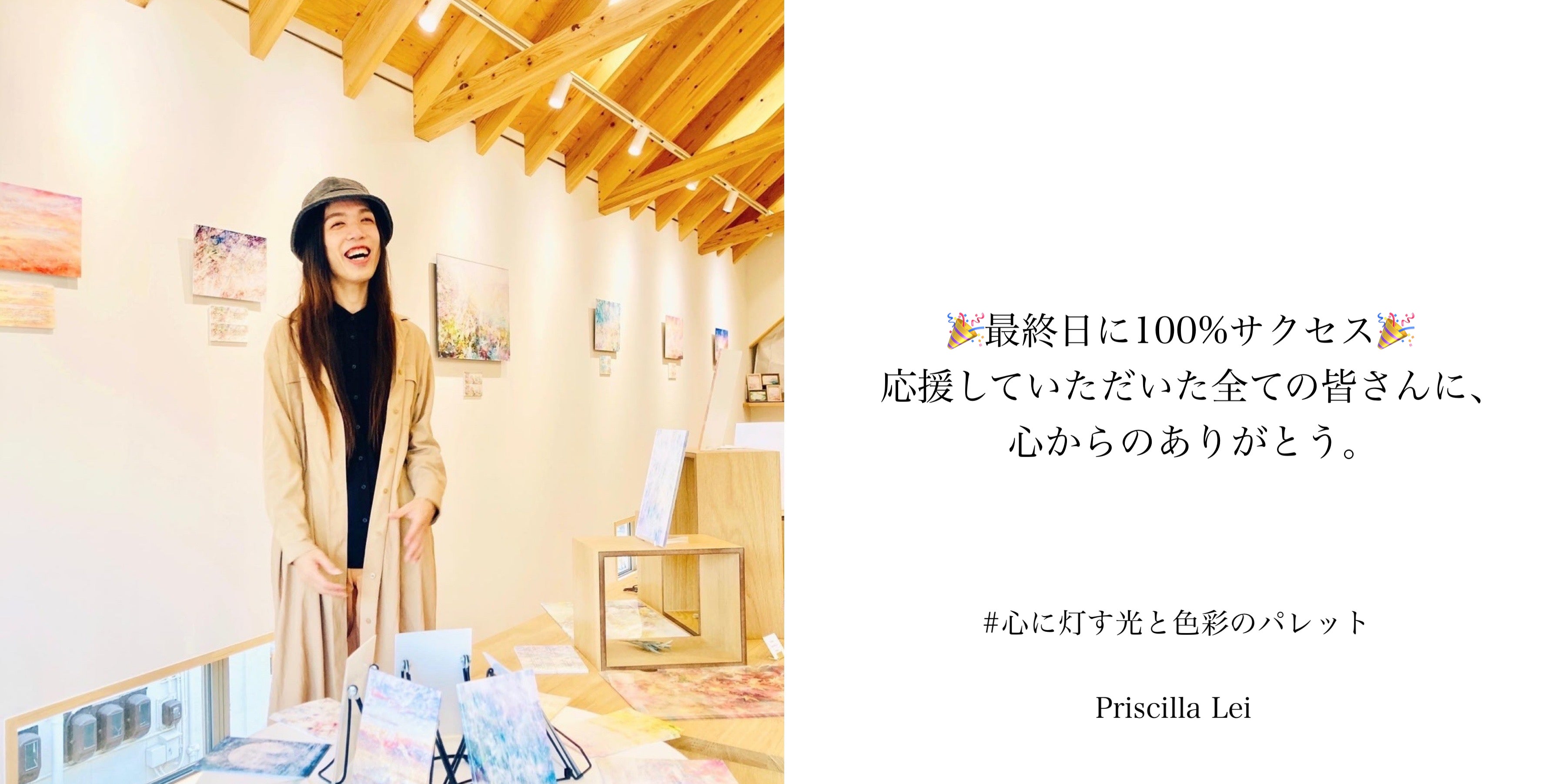 アーティスト Priscilla Lei(プリちゃん)です。5月も中旬になり、夏の気配を感じるこの頃ですね。先週、ご支援していただいた皆さんにはCAMPFIREからメールが届きましたように、アートブック第二弾出版実現に向けたクラファンは【最終日である5月10日(水)に、100%サクセスを達成】することができました。。!!!改めて、ご支援やシェアといった呼びかけ、100%サクセスできるために温かい応援をしていただいた皆さん。本当に本当にありがとうございました。。!みなさん一人一人のご協力があったからこそ、100%サクセスすることができました。最後の最後まで、Never give up の心意気でベストを尽くし切ることができたこと、繋がりのある皆さんと一緒に喜びあえたこと。これらが本当に嬉しかったです。。!“絵と言葉”で自分を励まし勇気づけるアートブック第二弾『心に灯す光と色彩のパレット ~ Soul Journey ~』は、みんなの応援パワーで花開き、今年【2023年9月末】に出版決定です。。!!—–(2023年5月10日 クラファン終了)—–目標:200万円支援総額:2,008,165円(100%達成)支援者数:272人SUCCESS日時 : 2023-05-10 23:48募集終了まで:終了———————————————また、100%サクセス直後には、私のInstagram投稿で”御礼メッセージ(長文)”も投稿させていただきました。まだご覧になっていない方は、下記のURLからチェックされてくださいね。◉100%サクセスできました。応援していただいた皆さん、本当にありがとう。◉https://www.instagram.com/p/CsG4-kzyVod/?utm_source=ig_web_copy_link&igshid=MzRlODBiNWFlZA==◉クラファン最終日終了3時間前〜100%サクセスを見届けるライブ配信◉https://www.instagram.com/p/CsETQfjhruc/?utm_source=ig_web_copy_link&igshid=MzRlODBiNWFlZA==プロジェクトページにも記載しましたように、今後の制作スケジュールは下記となります。5月:クラウドファンディング終了 / 掲載作品の順序など、構想をより具体的に固める6月:デザイン・印刷について具体的に固める7月:作品集に関する全てのデザイン最終決定、落とし込み8月:校正と本印刷9月:書籍完成・発送作業 / クラウドファンディングリターンお届け★アートブック第二弾『心に灯す光と色彩のパレット ~Soul Journey~』をリターンに選んでいただいた皆さんは、【2023年9月末】にお届けさせていただきます。その他のリターンに関しては、【9月以降】に順次発送させていただきます。★プロジェクト進捗状況は、Priscilla Lei(プリちゃん)のInstagram投稿・ストーリー、CAMPFIREの”活動報告”を中心に随時発信いたします。これを機に、インスタのフォローをしていただけると大変嬉しく思います。Priscilla Lei(プリちゃん)のインスタ★お問い合わせに関しては、Priscilla Lei(プリちゃん)のInstagram DM or CAMPFIREのメッセージ機能 or lisdia124@gmail.com に直接メール。いずれかの手段でご連絡くださいませ。最高のデザインチームと一緒に制作を進めて参りますので、9月末の完成・お届けを楽しみにお待ちくださいね。。!(私も非常にワクワクが止まらないです。。)◎◉Exhibition Info◉◎【大阪個展 5/28(日)まで絶賛会期中!最終日のみ、Priscilla Lei(プリちゃん)も在廊します】大阪・寝屋川市にあるC’est cool Shop & Gallery さんで、個展『心に灯す光と色彩のパレット ~ Soul Journey ~ 』を【5/12(金)〜5/28(日)】の期間で、現在会期中。展示作品はアートブック第二弾に掲載される作品・”Soul Journeyシリーズ”が中心です。普段は東京を拠点に活動しているため、大阪での個展は貴重な鑑賞機会となっております。お近くの方は、ぜひお立ち寄りいただけますと嬉しく思います。。。!5/12-5/14の在廊日には、今回のクラファンでご支援していただいた皆さんともご挨拶させていただきました。残る在廊日は、【5/28(日) 最終日のみ】となっております。そのため、展示会場に「感想ノート」を置きました。もし私がいないときに、お越しいただくことがありましたら、こちらのノートに感想を寄せていただけると、最終日に全部チェックさせていただきますね。直接ご挨拶できる機会が少ないのは申し訳ありませんが、その代わりに展示作品のキャプションには、”創作ストーリー”もしっかりと掲載いたしましたので、じっくりお楽しみくださいね。天井が高く、光もまわり、木の温もりも感じられる素敵なギャラリーさんなので、今のベストな作品たちを空間まるっと体感していただけましたら。また、【月・火曜はギャラリーの定休日】となっておりますので、予めご注意ください。空間を通して旅を追体験するかのような、”新しいインスピレーション”。穏やかで優しい気持ちになれる、”余白のひととき”を味わいにお越しいただけましたら幸いです。Priscilla Leiプリちゃん✴︎⋆.* ✴︎⋆.* ✴︎⋆.* ✴︎⋆.* ✴︎⋆.* ✴︎⋆.* ✴︎⋆.* ✴︎⋆.*大阪個展会期中 ! 5/28(日)までPriscilla Lei Solo Art Exhibition『心に灯す光と色彩のパレット ~ Soul Journey ~』<展示概要>私は昨年2022年に約1年をかけて、「日本一周」を達成。今までに訪れたことのない県が多かったの