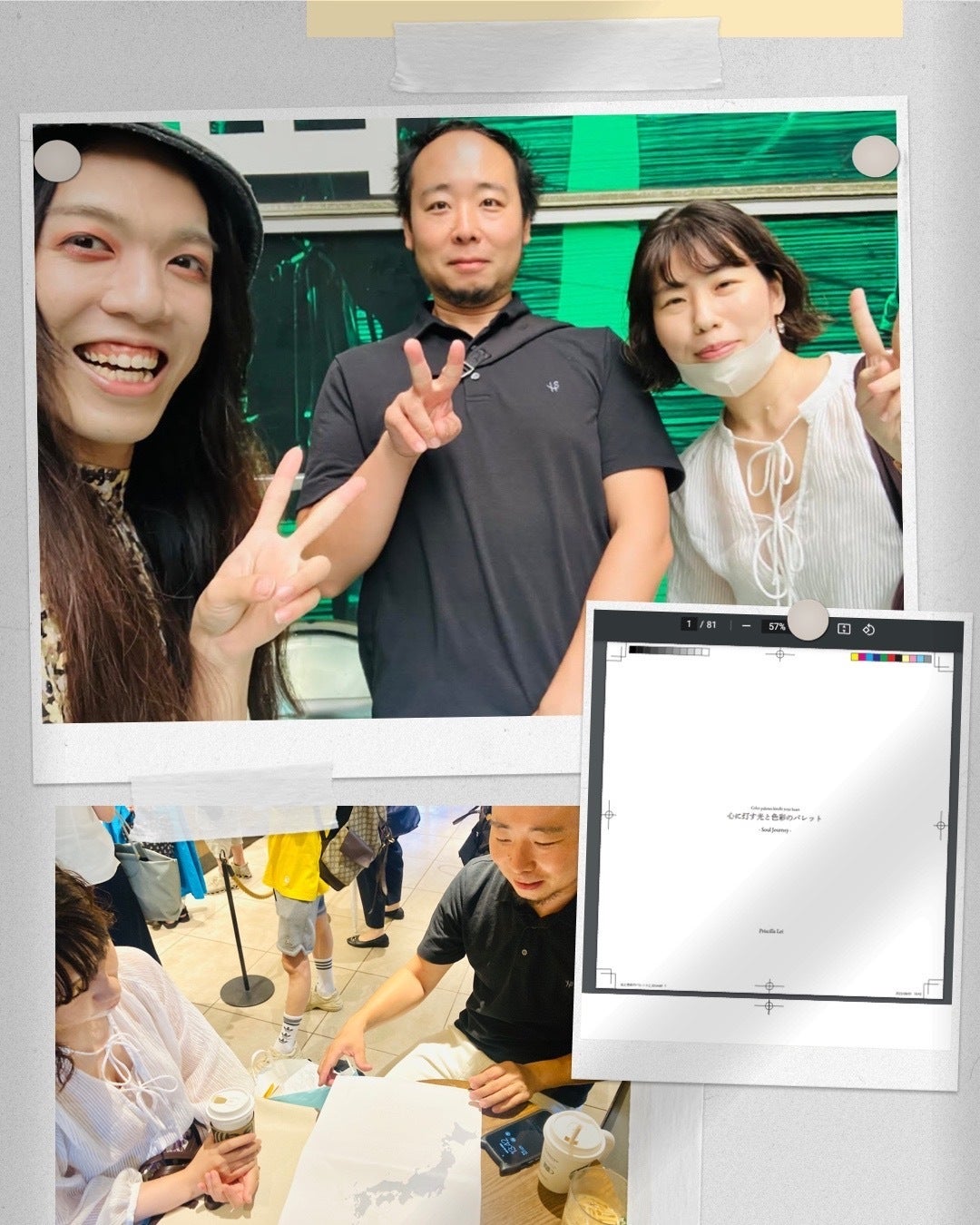 みなさん、こんばんは!アーティスト Priscilla Lei (プリちゃん)です。私たちのアートブック第二弾の制作、進展がありましたのでご報告致します。。!★今月、8月中に「今後に関係するご案内」をCampfire上のメールなどを通して、対象者に呼びかけ・やり取りをさせていただく予定です。また追って、ご連絡いたしますのでご協力をお願いいたします。✴︎⋆.* ✴︎⋆.* ✴︎⋆.* ✴︎⋆.* ✴︎⋆.* ✴︎⋆.* ✴︎⋆.* ✴︎⋆.*雷鳴が轟いた、8/1(火)。私たちのアートブック第二弾『心に灯す光と色彩のパレット ~ Soul Journey ~』の出版・制作ミーティングを実施。5/10にクラファンを終えて以降、最高のデザインチームと数回にわたってミーティングを重ねながら、制作・執筆に励んできました。お陰様で、進捗状況は9割クリアすることができ、残る大きな1割を肉付けしていくための追い込み・ラストスパートに突入しました。。!今月8/20(日)が入稿予定日。「ついに、ここまできたのか。。!」と、さらなる熱量が高まっている今日この頃です。。昨年の2022年。私は約1年間かけて日本一周しながら、各都道府県で見た光景をもとに新作 ”Soul Journey シリーズ”を創り続けてきました。日本中で出逢ってきた #虹色スマイル な人たち・各都道府県の風土が織りなす光景・春夏秋冬の移ろい・研ぎ澄ました五感で感じたこと。。2023年の今でも、心と体が鮮明に覚えているプライスレスな体験。これらが濃縮エッセンスとなって、目に見えるアートワークとして産声をあげた全作品を、現在制作中のアートブック第二弾に掲載します。掲載作品数は88点。前作と大きく違うのは、ページ数が160ページに増えて、作品メッセージのみならず、+aの文章がたっぷりあるところ。この7月〜8月にかけては、この執筆時間に大きく時間を割いていたのです。文章を省き、追加・修正をして、一度書き上げたとしても、何度も何度も読み返す。時間を忘れるくらいずっと向き合い続けていると、エネルギーを消費しすぎて?眠気も襲いかかってくるけれど。。受け取ってくださる方に、最高の一冊をお届けしたいから頑張れるよね。日本一周を終えてから今日に至るまでも、たくさんの人と出逢い・交流をともにしてきました。一人一人と対話を重ねるなかで改めて気づいたことは、私が日本一周・Soul Journey を実施・完走できたことは本当に恵まれていたということ。世の中には色んな事情があって、取り組みたくても取り組むことができない人たちがいるということ。「その方々に対して、私はどう言葉を返せばよかったのか。。」と、今でも思い悩んでしまうことがあります。でも、一つだけできることがある。それは体験して感じたことを一冊に深く落とし込むこと、そして惜しみなくシェアすること。体はお家にいながらでも、魂で追体験ができるような。イメージを膨らませながら、心でご馳走を美味しく味わえるような。それが、体験できた人の御役目。Priscilla Leiプリちゃん