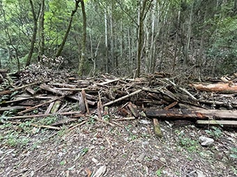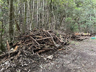 キャンプ場跡の資材・ガレキの山