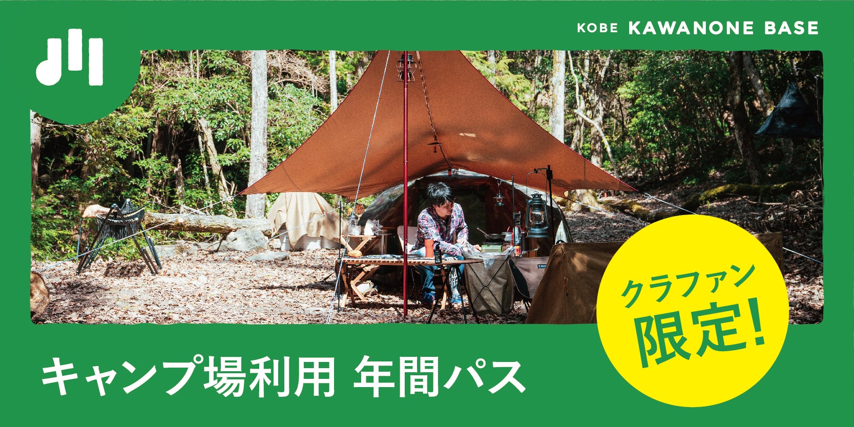 神戸市北区山田町の里山エリアに「KOBE川の音ベース」キャンプ場を再生し、ソロキャンパーからファミリー層まで誰もが気兼ねすることなく、ありのままの自然を味わえるサイト環境をご提供します!都心三宮から車で15分、都市と里山をつなぐ豊かな場所で、たくさんの笑顔を作る夢を叶えるためのキャンプ場造成中です!