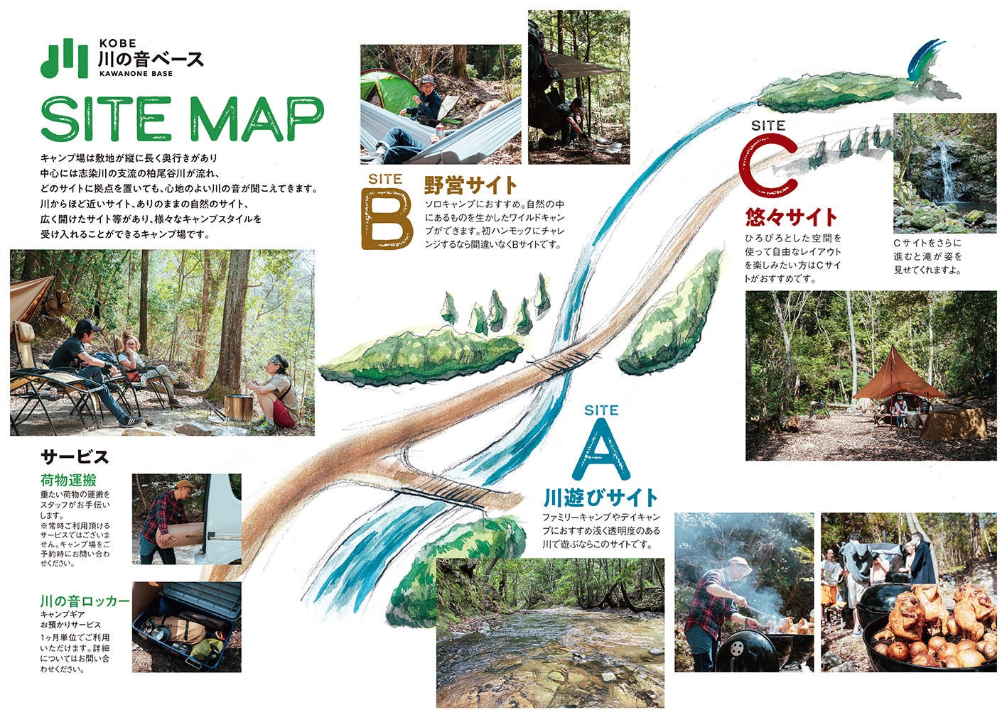 KOBE川の音ベースキャンプ場は、訪れた方に「ありのままの自然を味わえる空間」をお届け出来ると強く信じています!